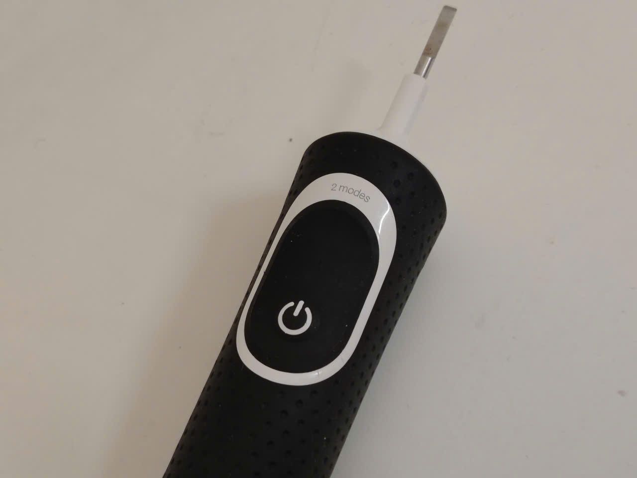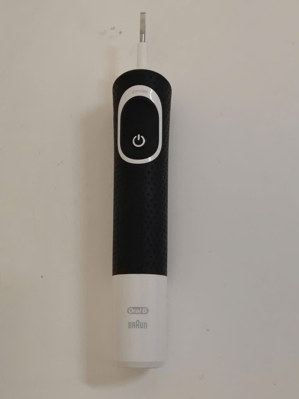 Bàn chải đánh răng điện màu đen phối màu trắng Braun dạng sạc 2 chế độ mạnh nhẹ.