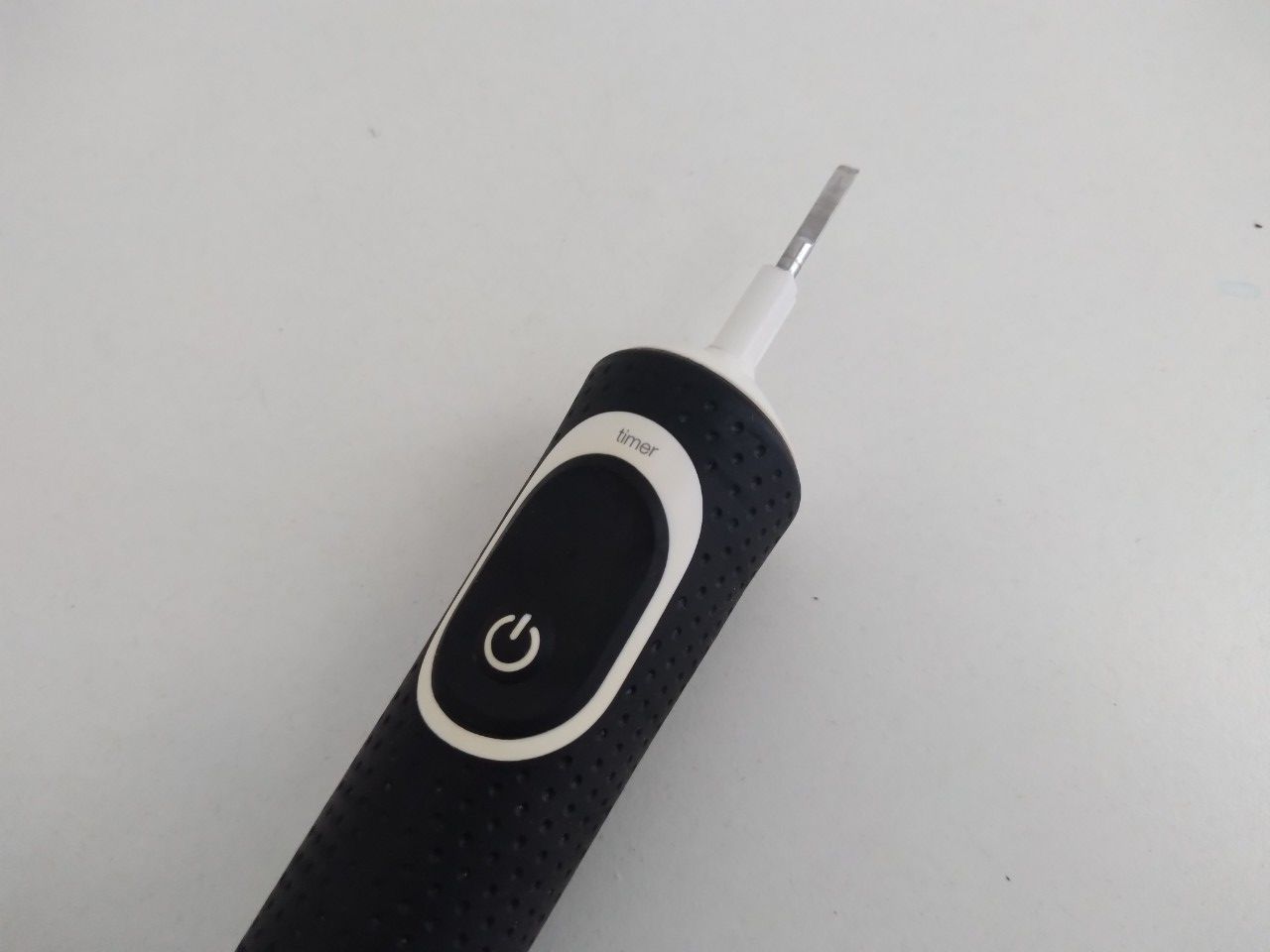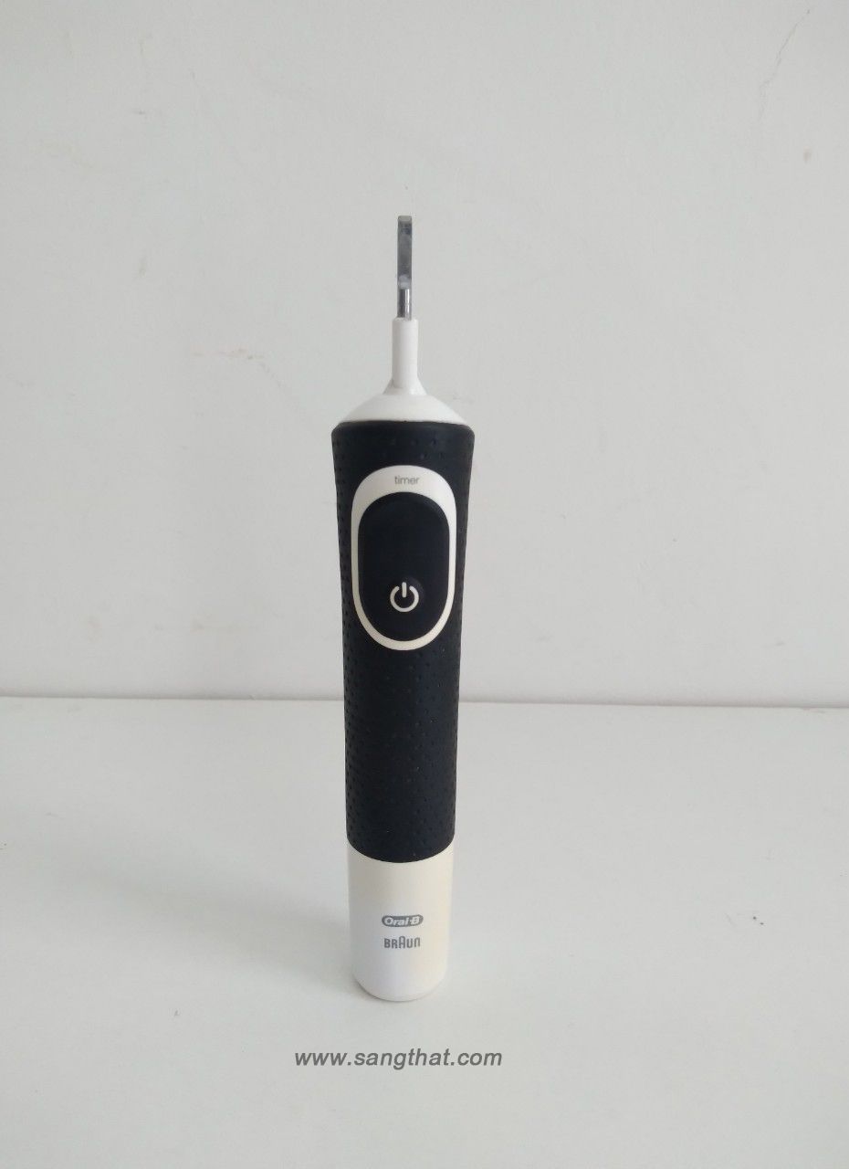 Bàn chải màu đen trắng Braun dạng sạc. Bàn chải sạch sẽ.