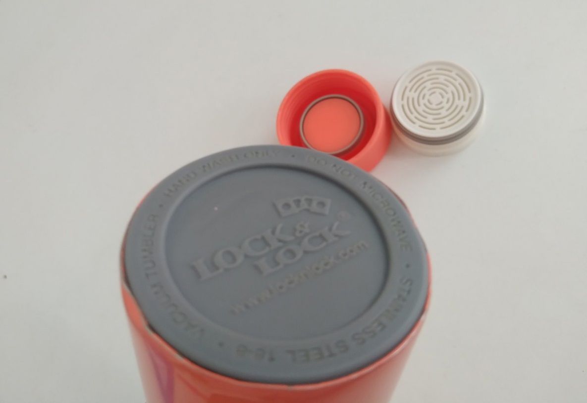 Bình giữ nhiệt màu cam hồng 330ml Lock n Lock. Bình sạch đẹp, có khay ngăn trà giữ nhiệt tốt.