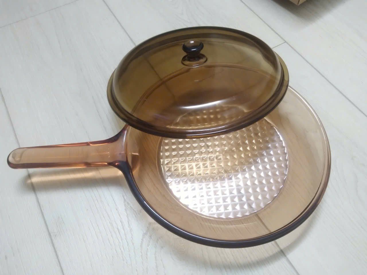 Chảo thủy tinh Vision Corning France thương hiệu Mỹ (Sx tại Pháp) đường kính 25cm cao 4.5cm (39cm cả cán)