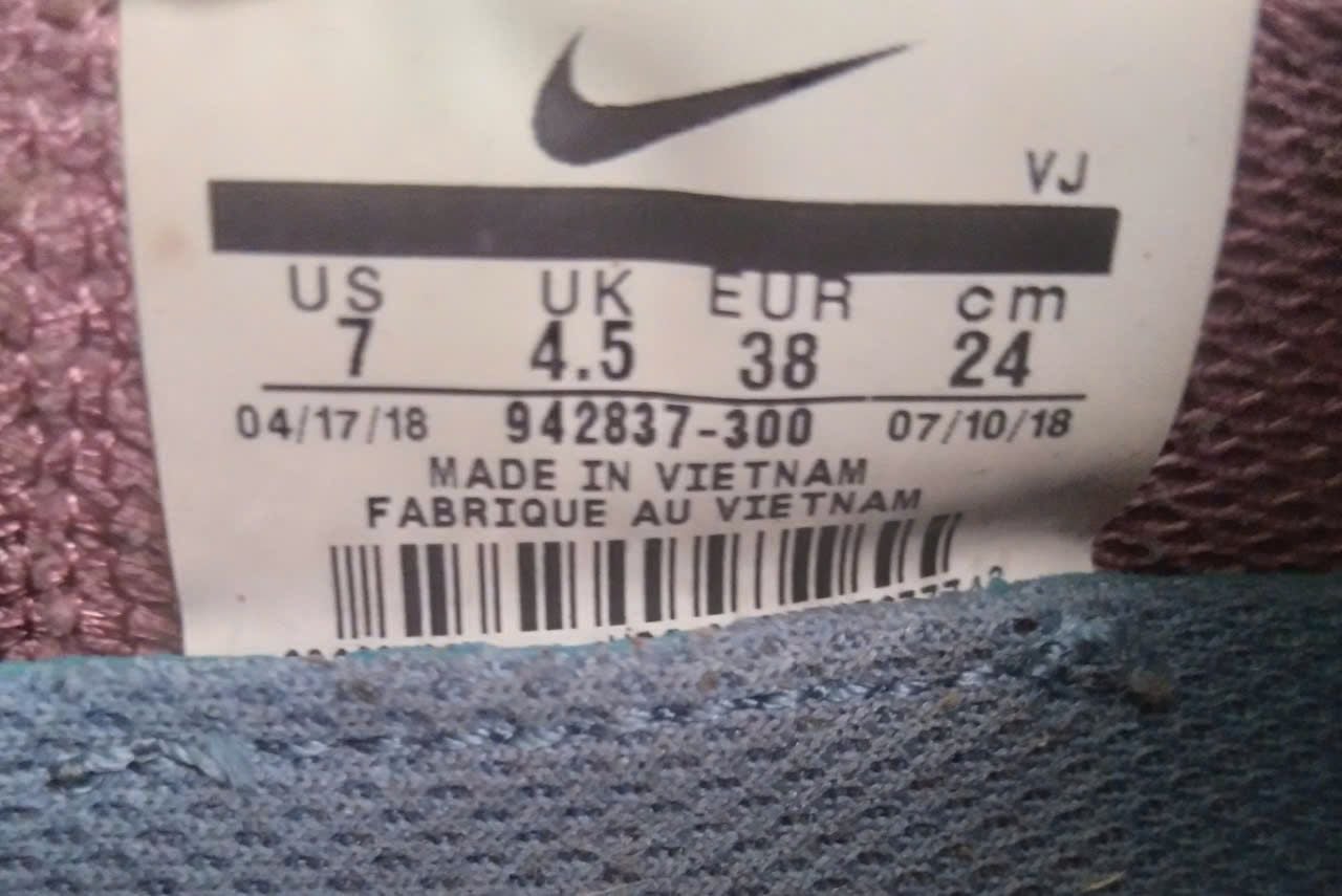 GTT93 Giày nữ thể thao chạy bộ màu Xanh mint Nike (942837 300) size 38 (24cm). Giày có màu sắc rất nhẹ nhàng, giản dị nhưng rất tinh tế. Thiết kế siêu nhẹ, đế êm mềm, đàn hồi uyển chuyển linh hoạt và thoáng khí giúp thoải mái khi chạy đường trường. Giá nước ngoài khoảng 100 đô, bán ở vn khoảng hơn 3tr.