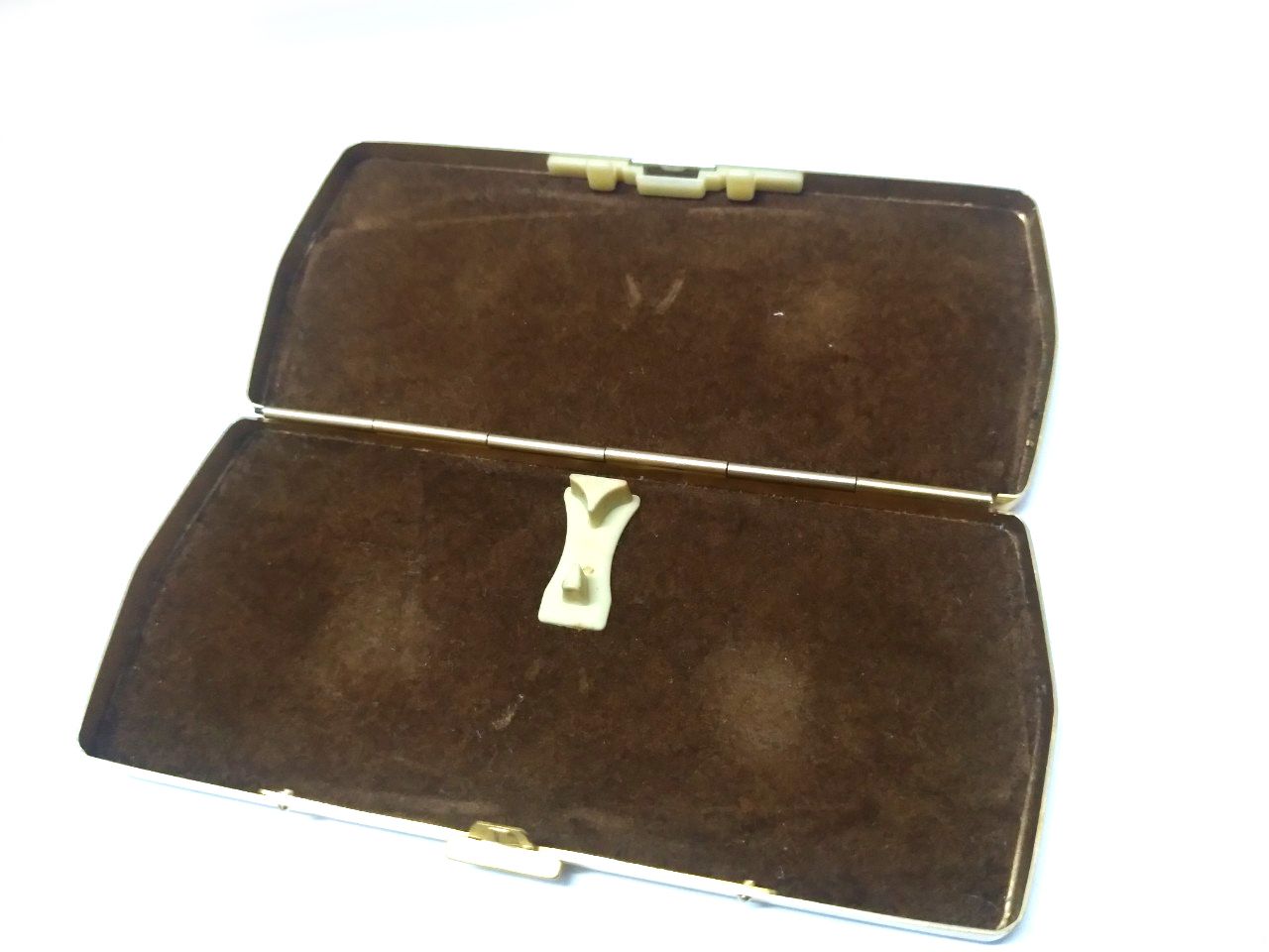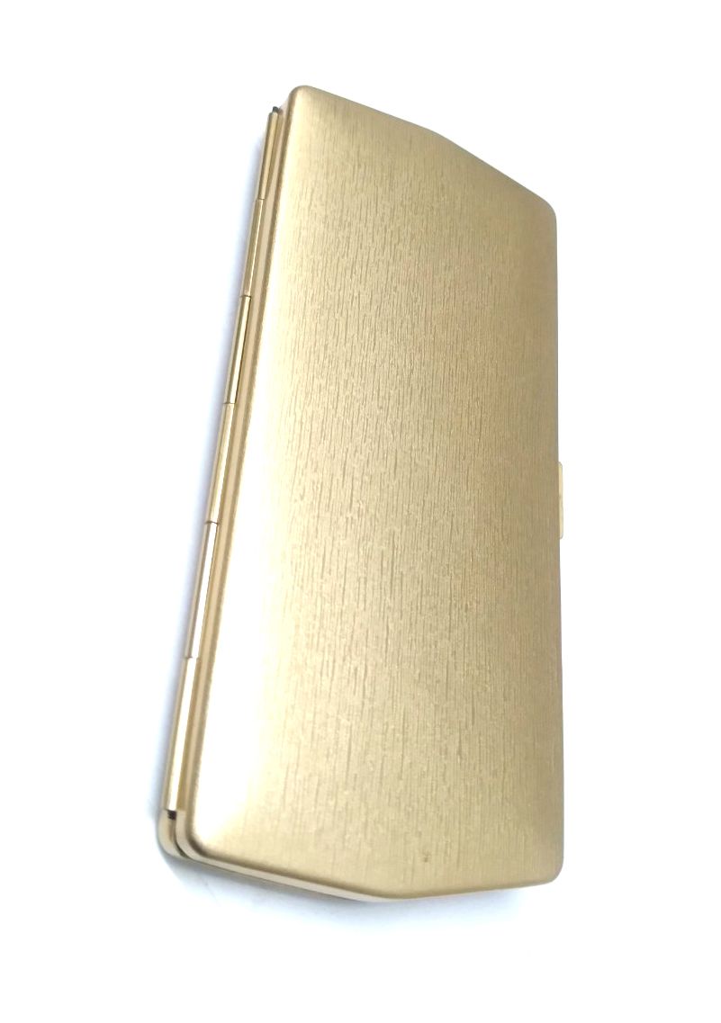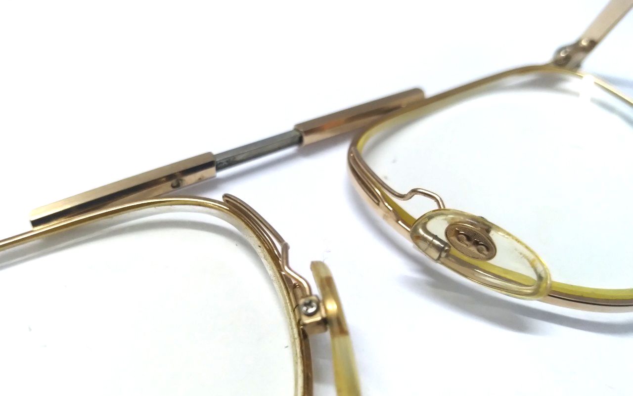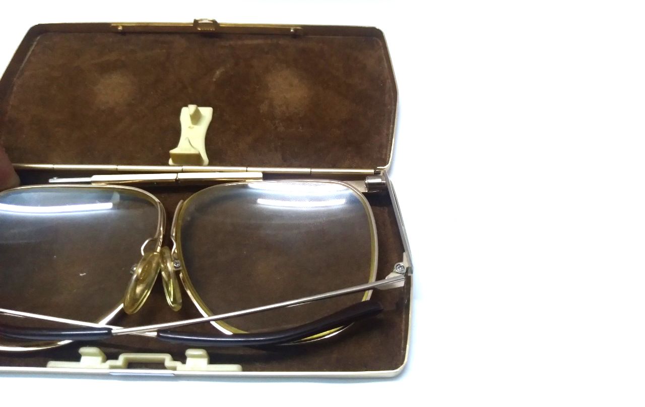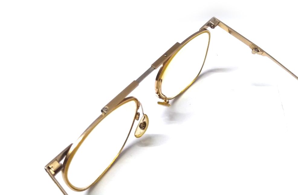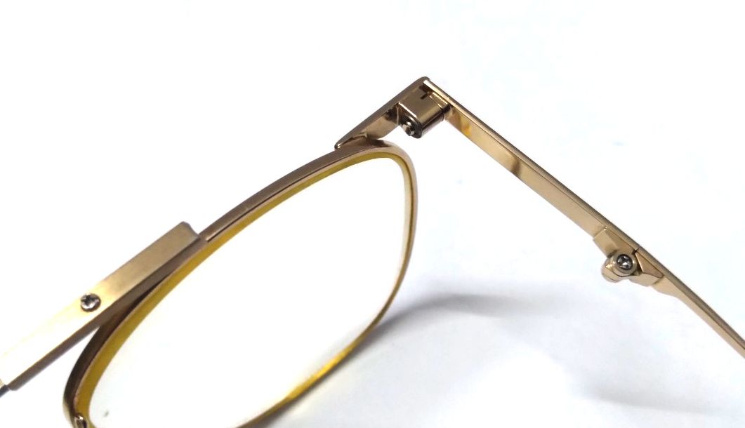 Gọng kính cổ titanium màu vàng tây nhẹ Kanda dạng gập gọn với hộp đi kèm.