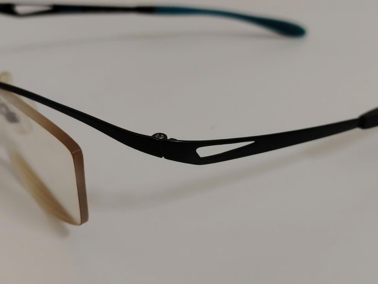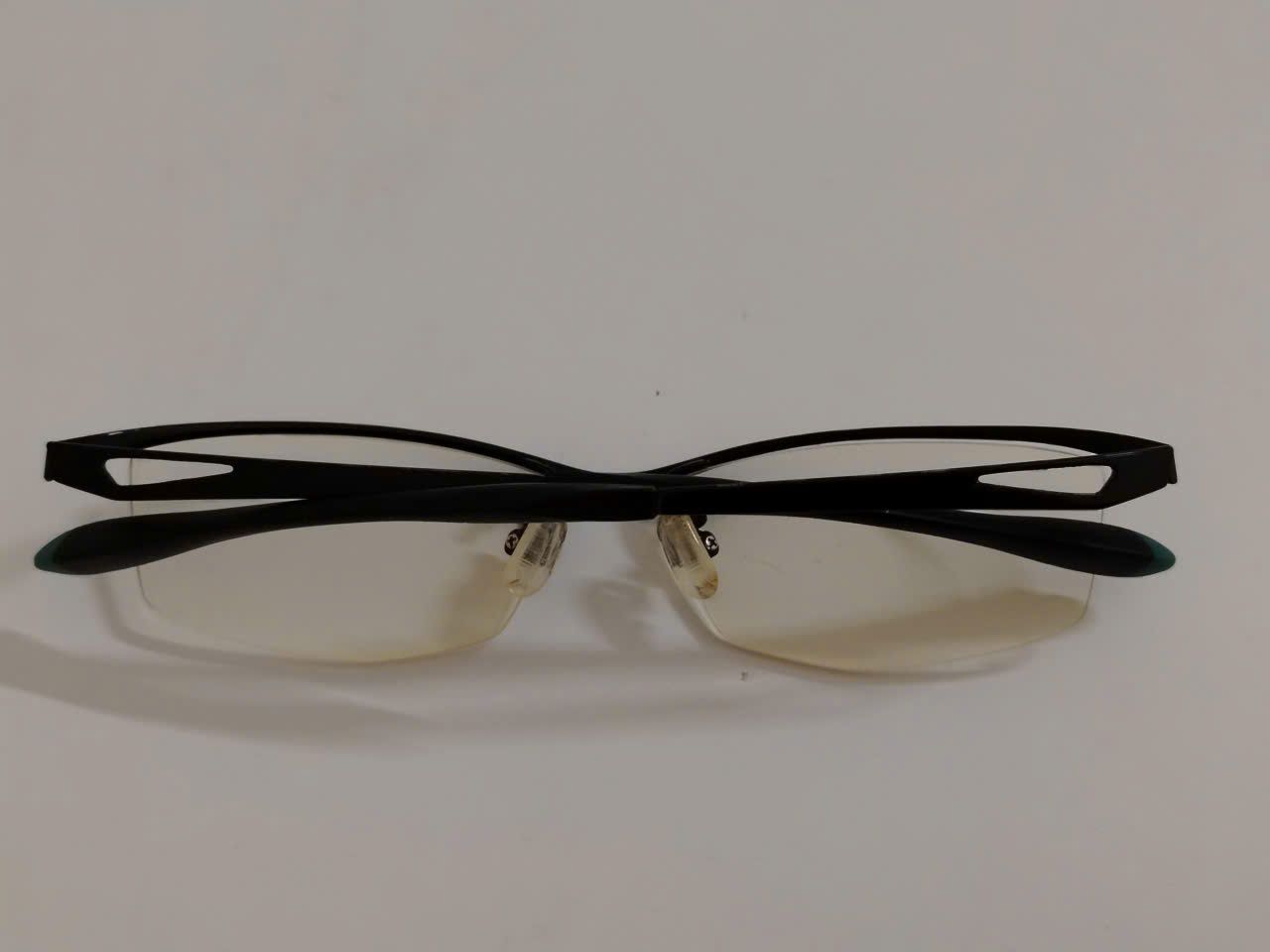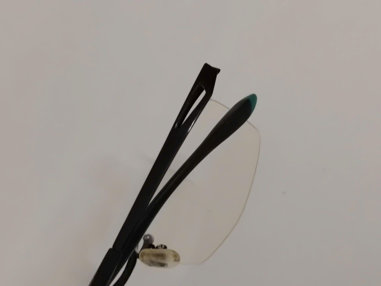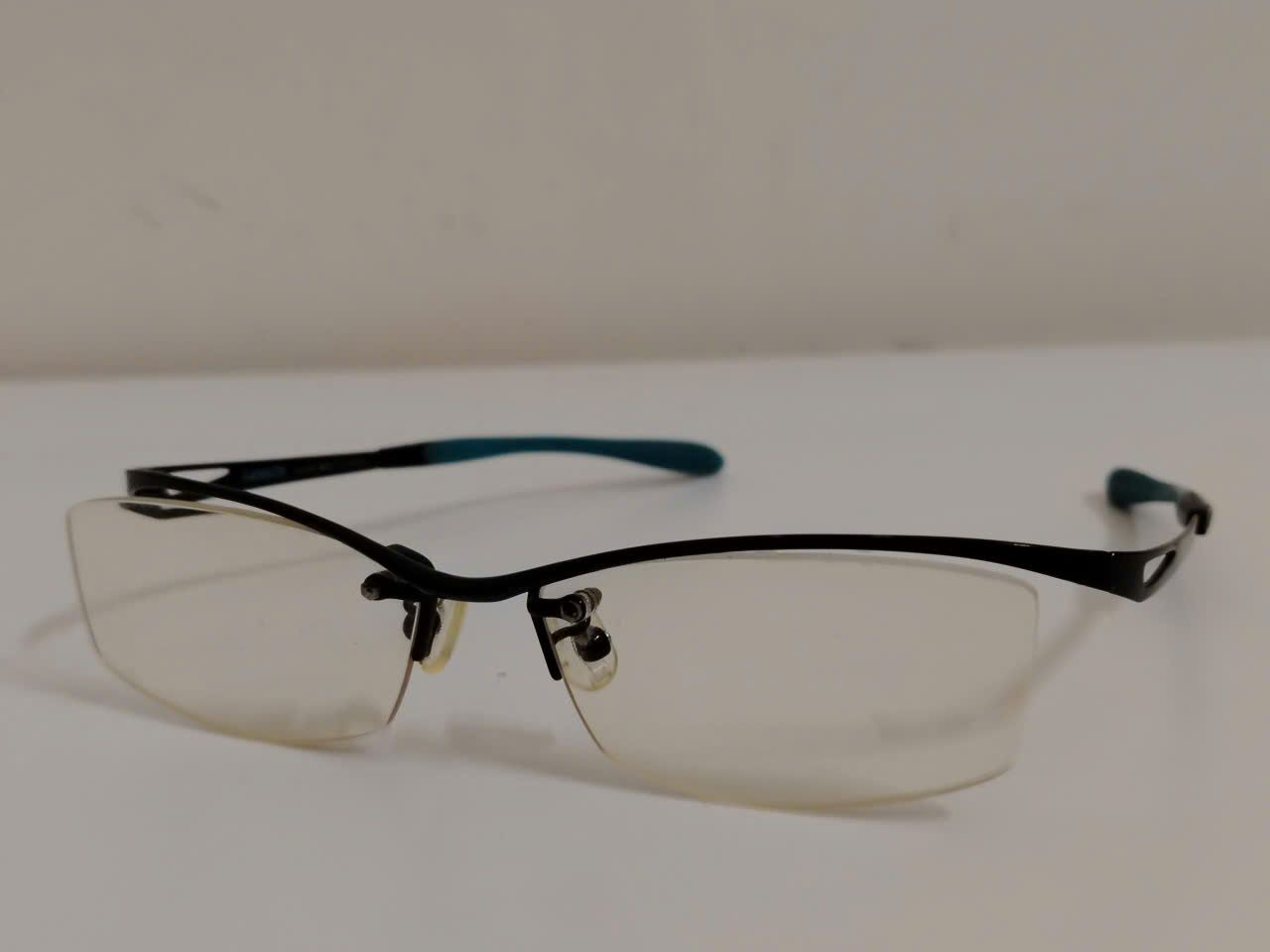 Gọng kính khoan nửa viền titanium màu đen phối xanh I-Athlete (Made in Japan).
