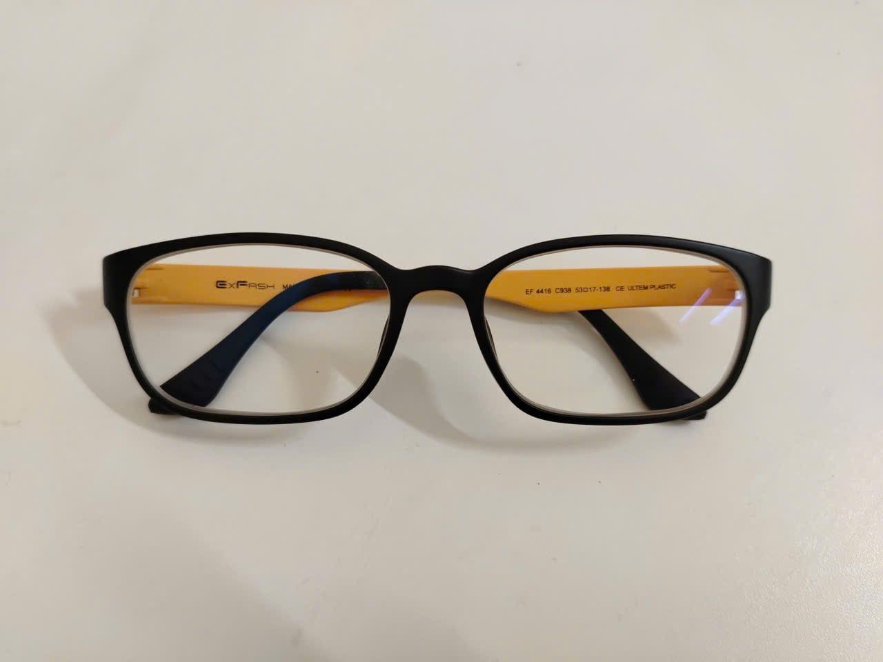 Gọng kính màu đen càng màu vàng ExFash (Made in Korea).