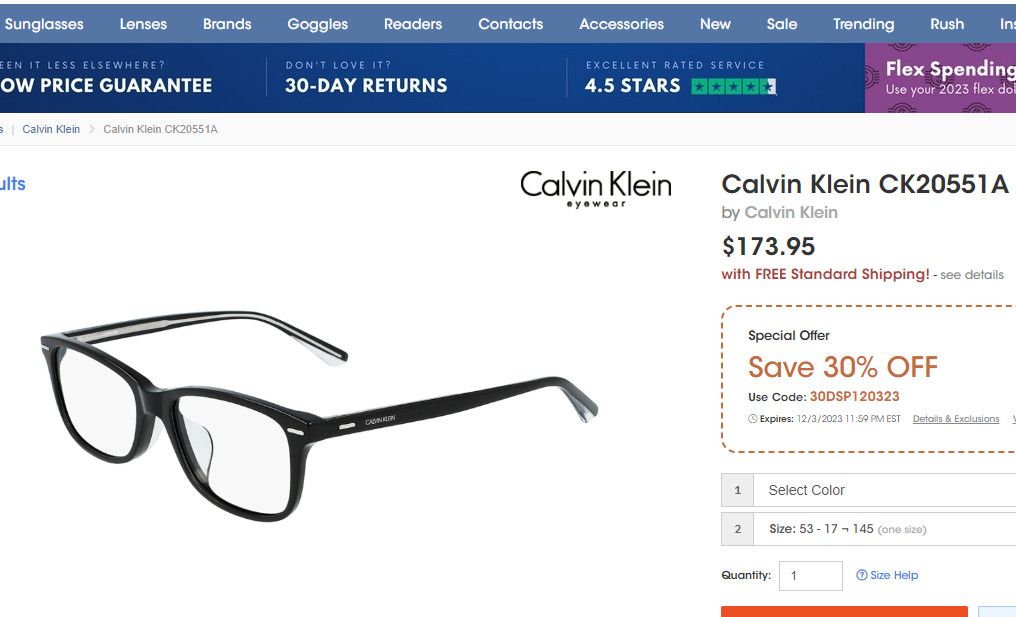 Gọng kính màu đen CK CalvinKlein (CK20551A chuẩn xịn). Gọng đẹp, độ mới cao.