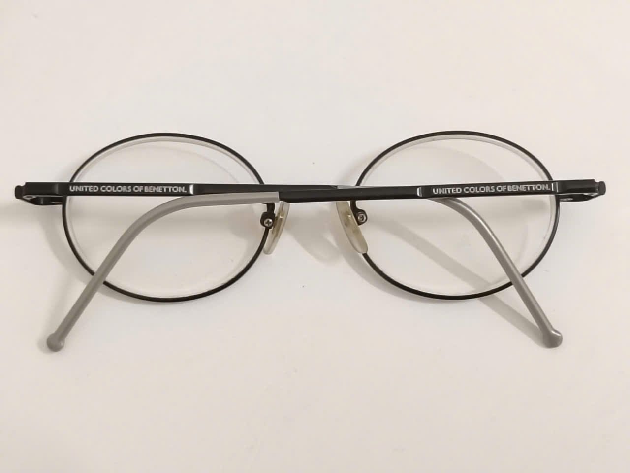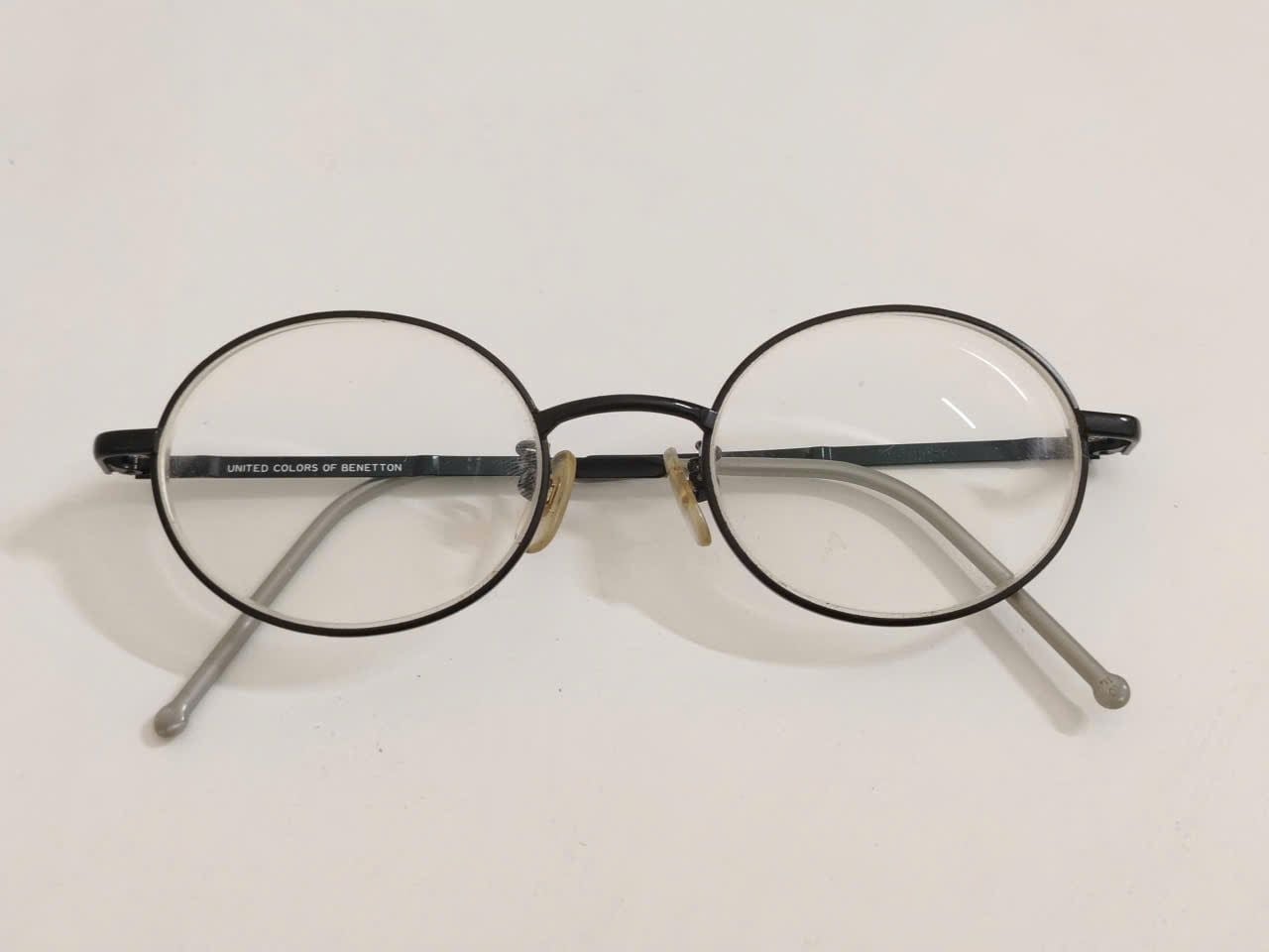 Gọng kính màu đen dáng oval thương hiệu United Colors of Benetton của Ý.