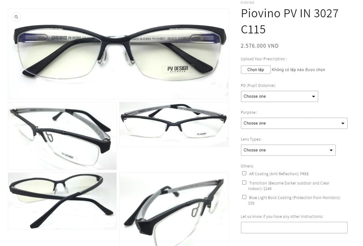 Gọng kính màu đen nửa viền PIOVINO (PV-IN3027 C116).