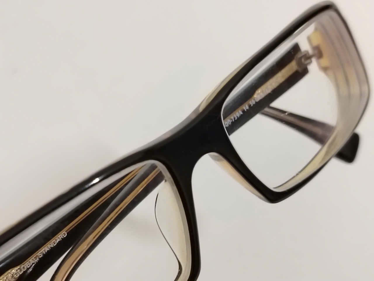 Gọng kính màu đen phối màu mã não đậm chất cổ điển thương hiệu Jins Global Standard