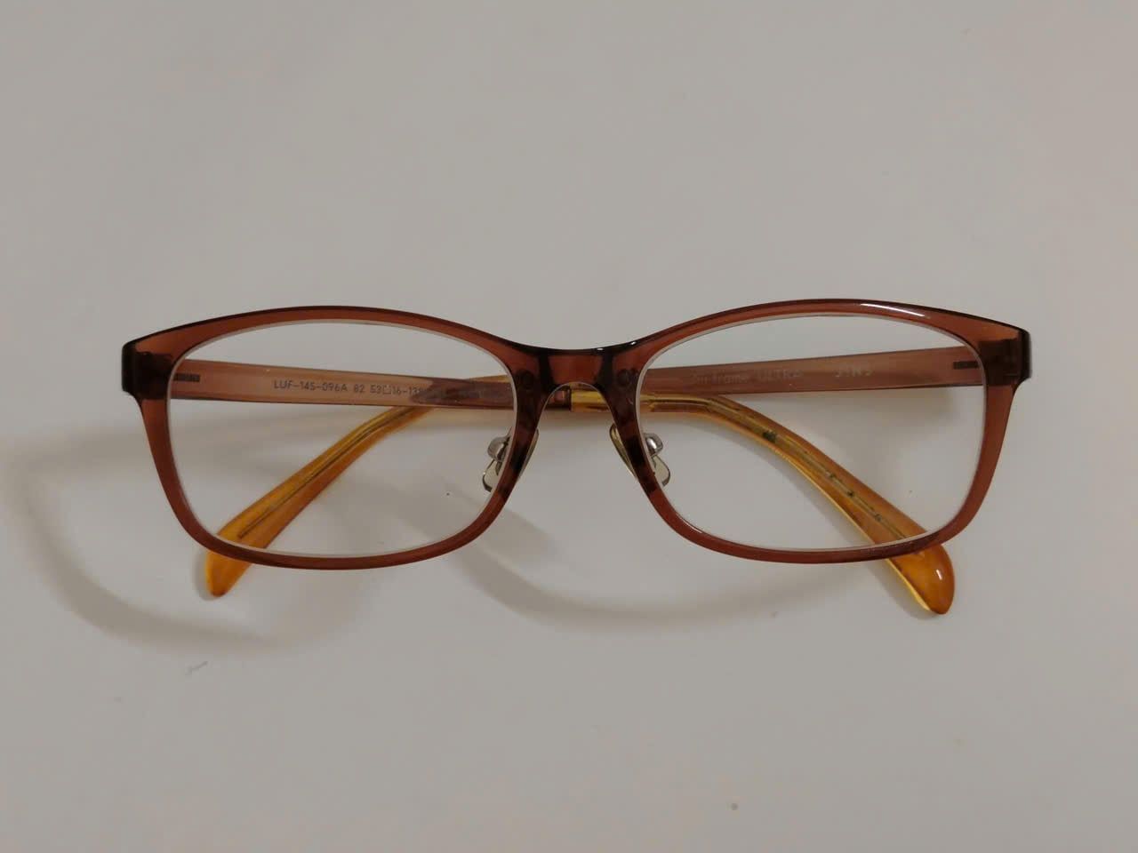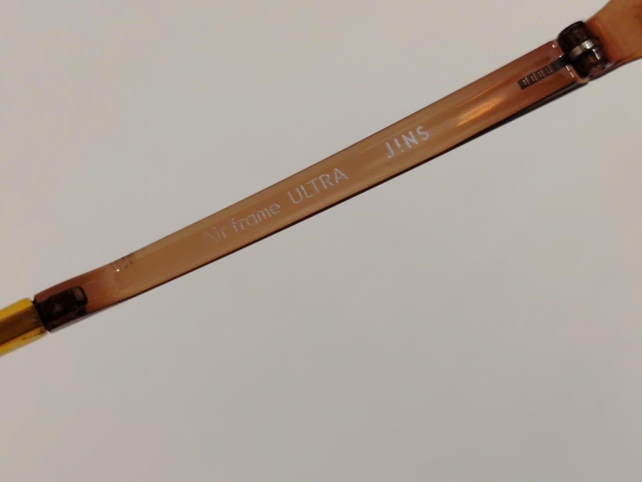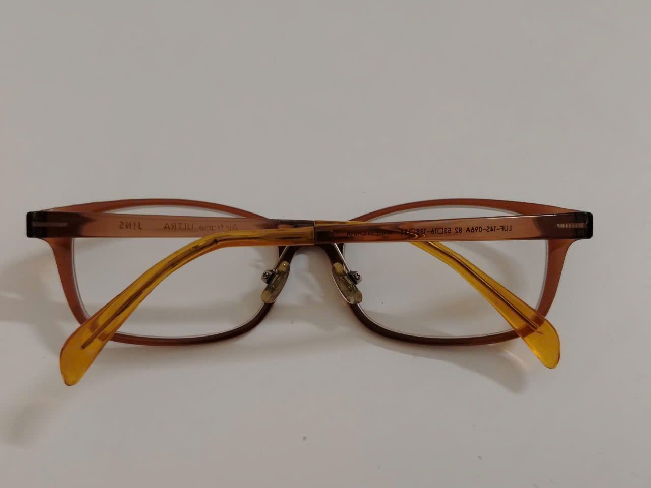 Gọng kính mầu nâu nhựa trọng thương hiệu Jins. Gọng kính thuộc dòng Air Frame.