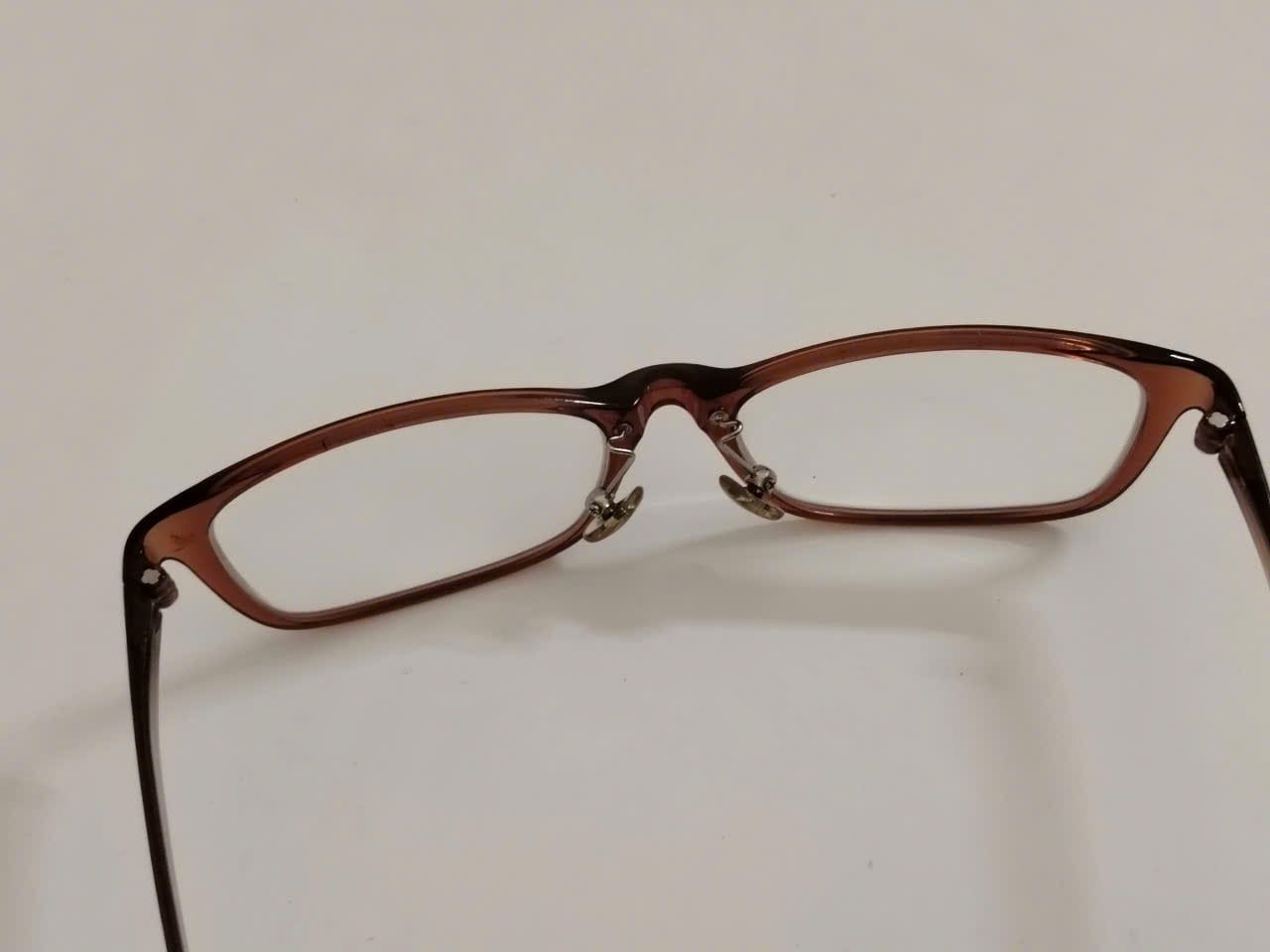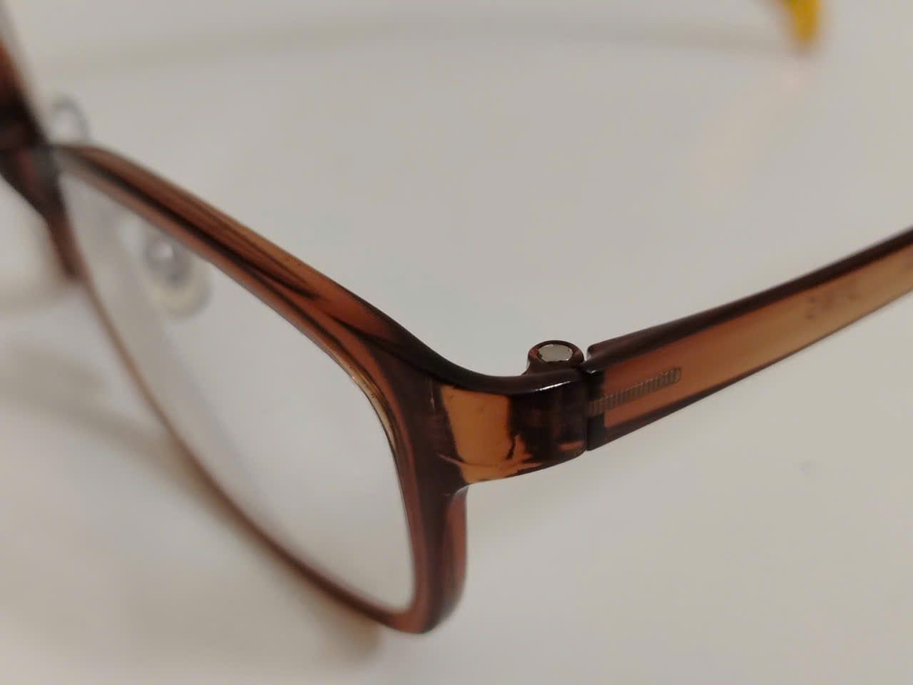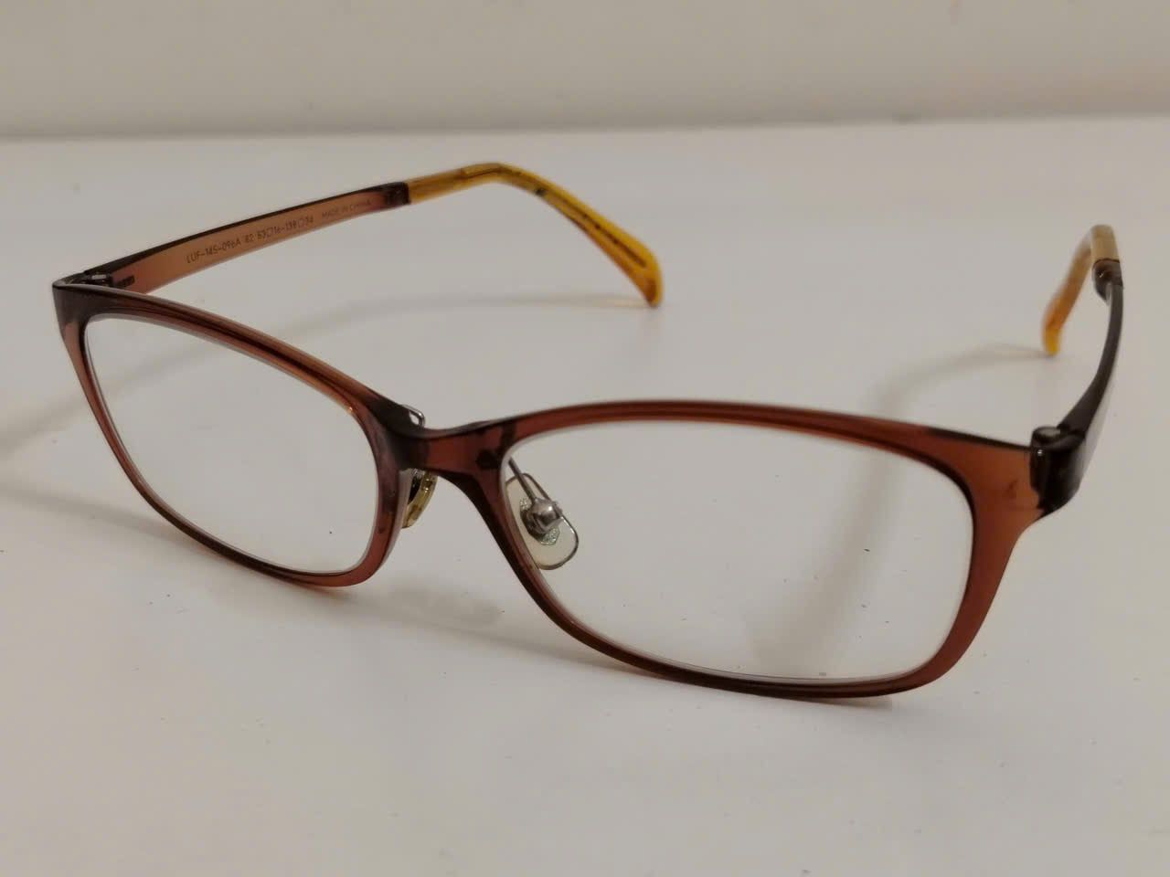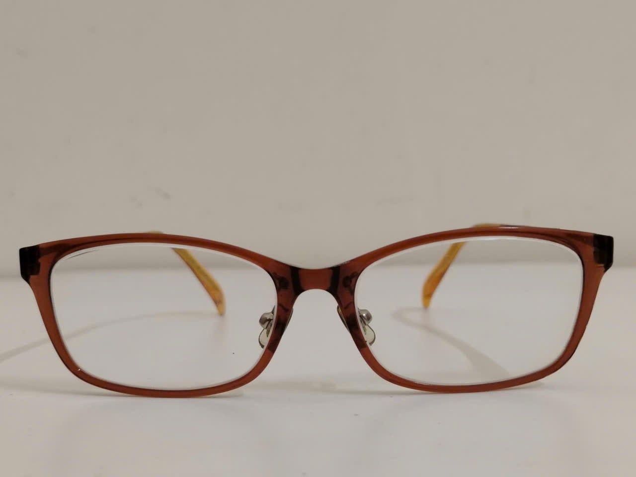 Gọng kính mầu nâu nhựa trọng thương hiệu Jins. Gọng kính thuộc dòng Air Frame.