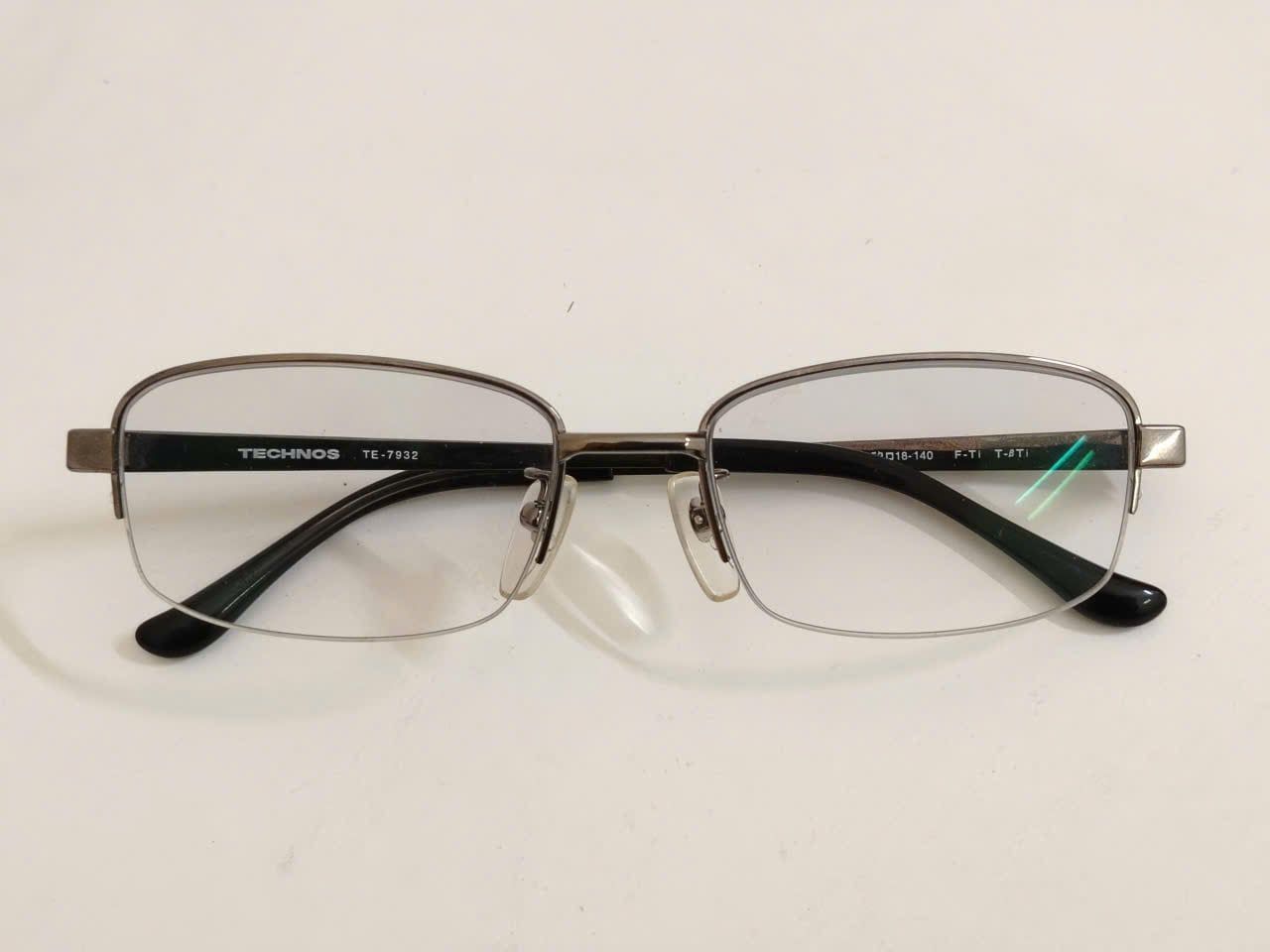Gọng kính nam giới titanium dáng nửa viền màu hun khói thương hiệu Technos (Made in Japan)