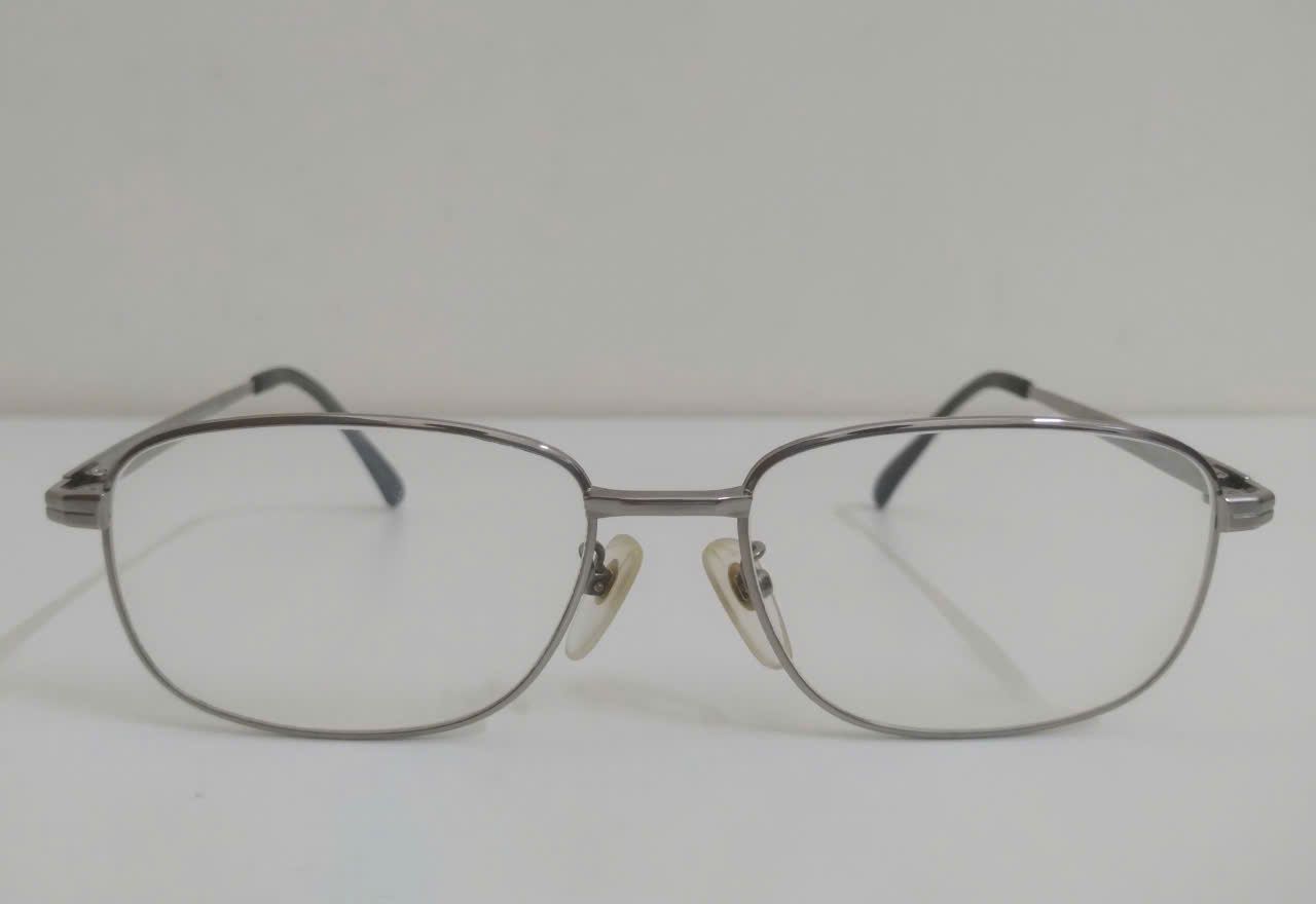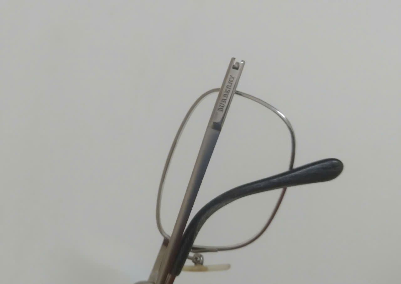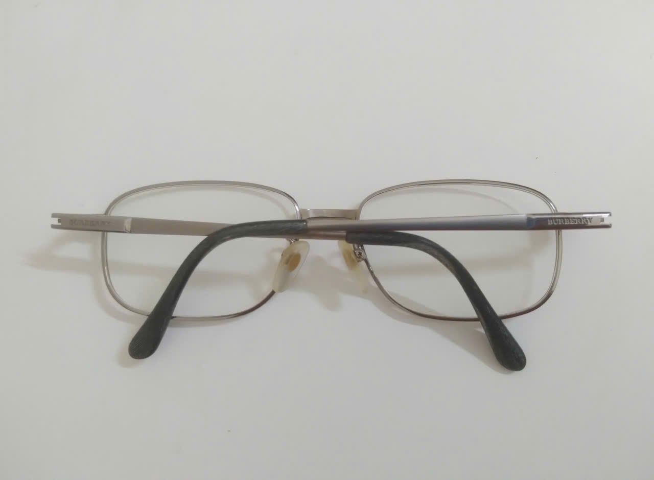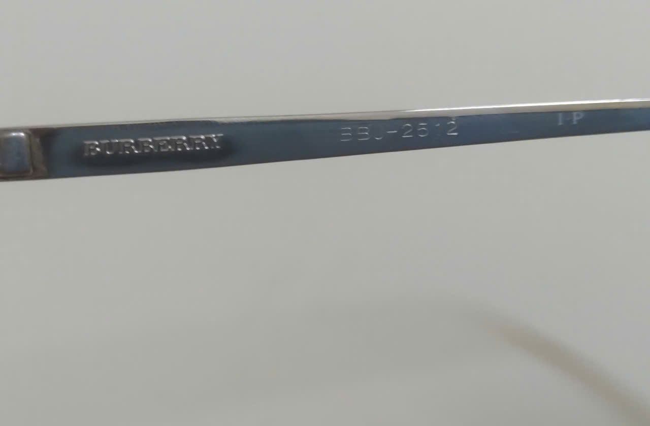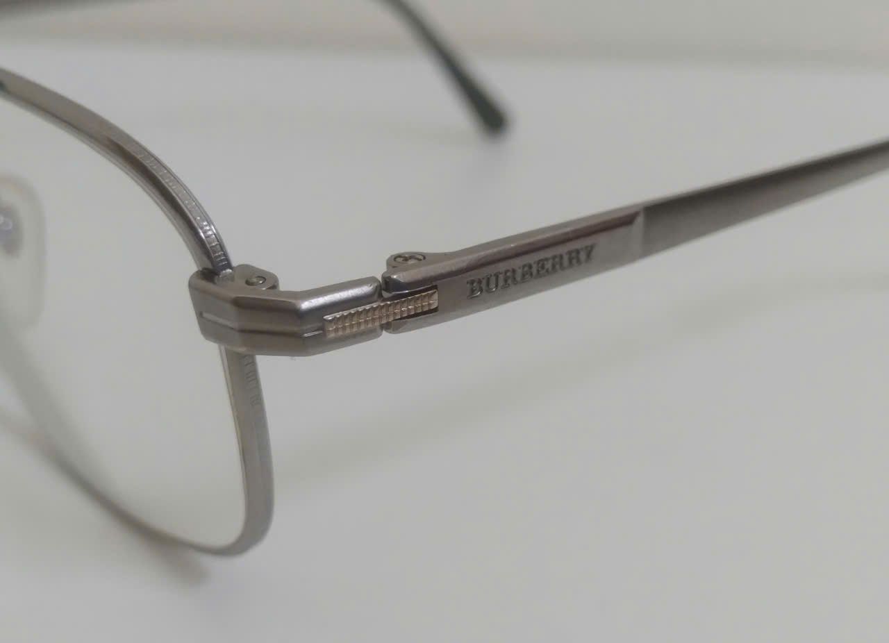 Gọng kính nam giới titanium màu bạch kim thương hiệu Burberry.
