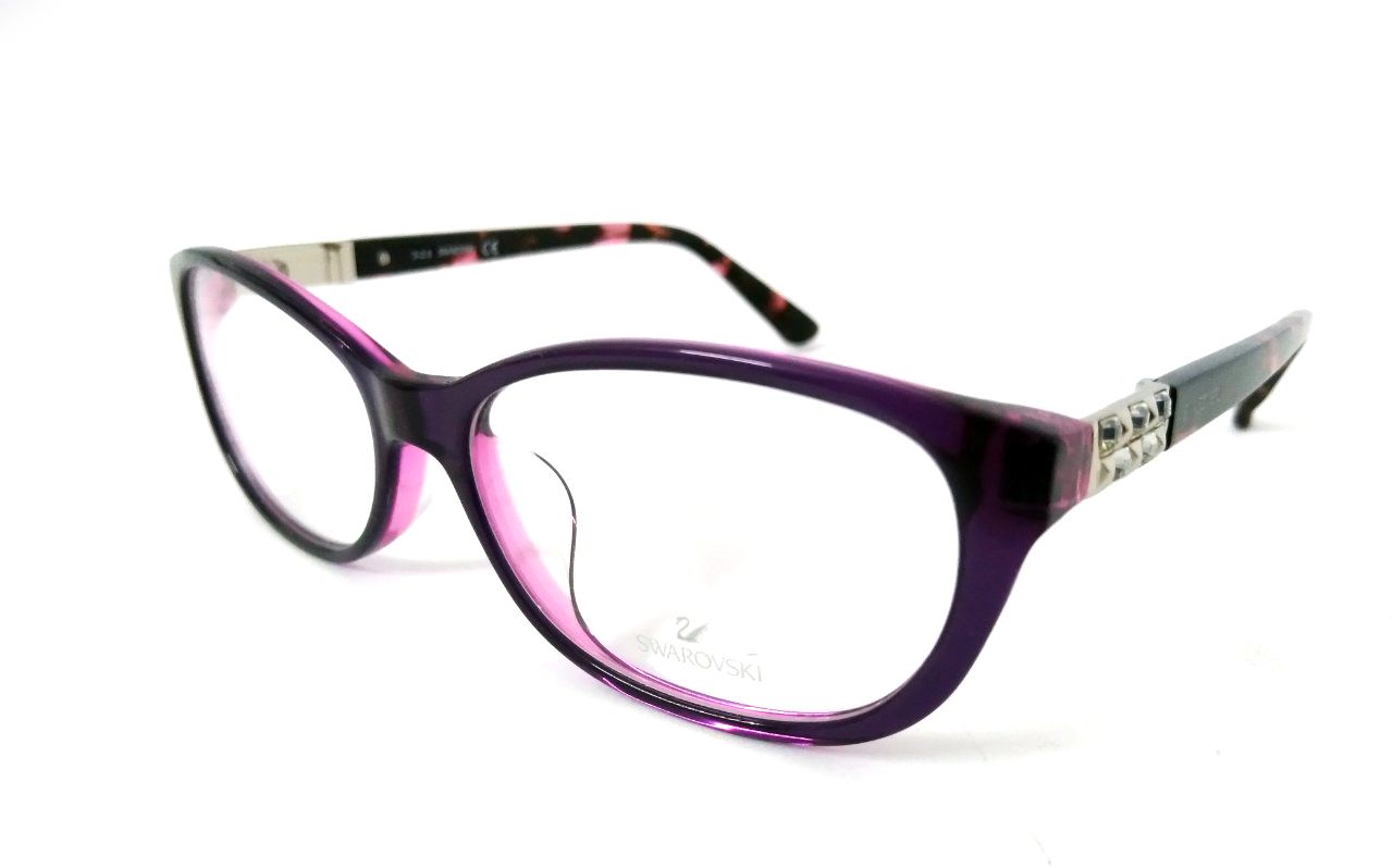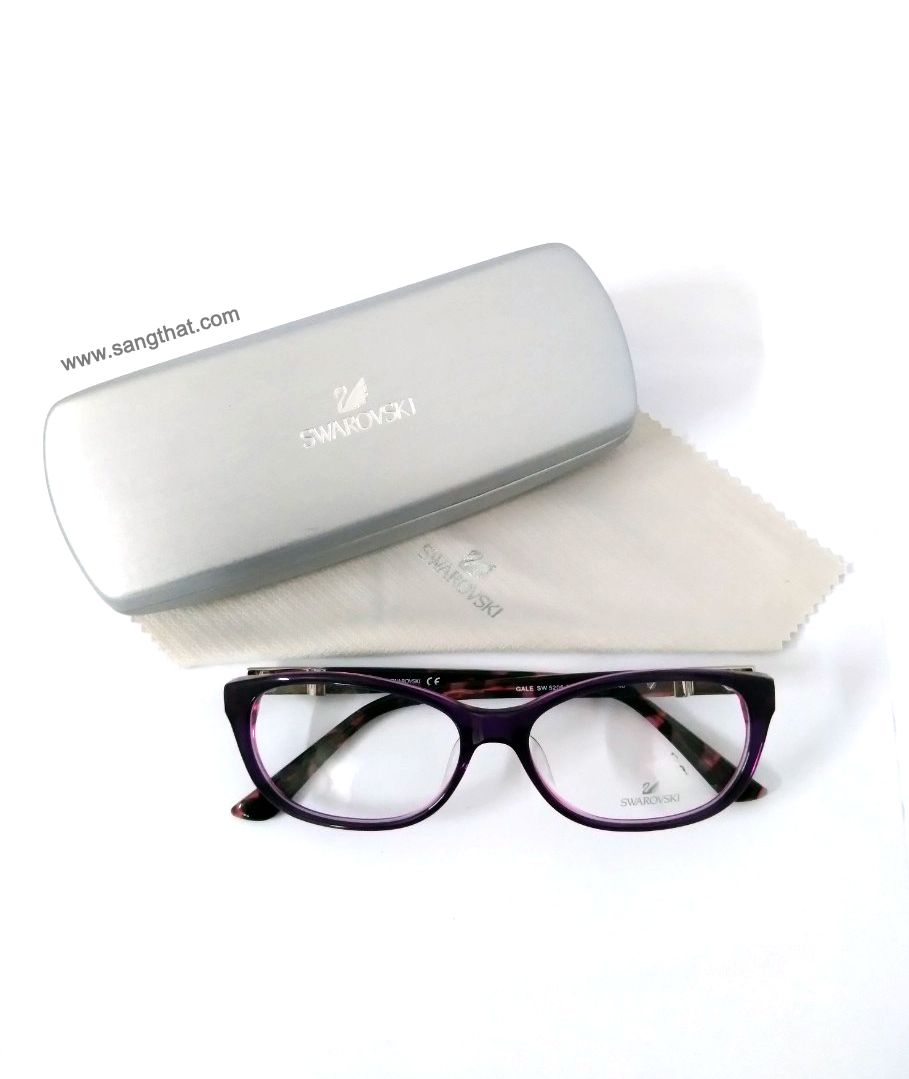 Mã sản phẩm: GKSS55 Tình trạng: Còn hàng Thương hiệu: Swarovski Nhãn: ngang 13.5cm, gọng kính màu tím, size 55, cao 4cm, Gọng kính gắn đá quý
