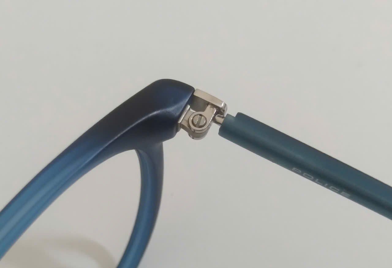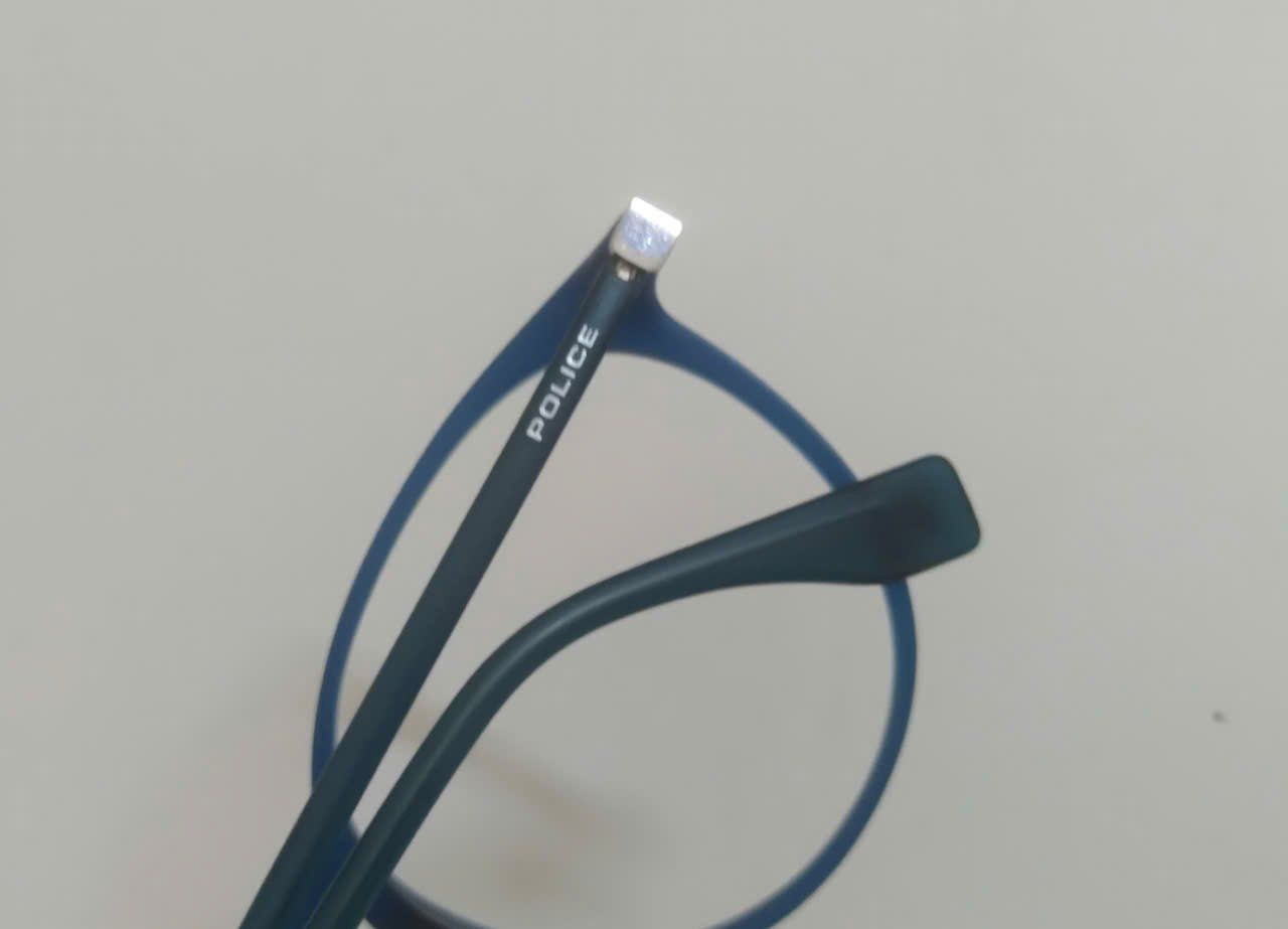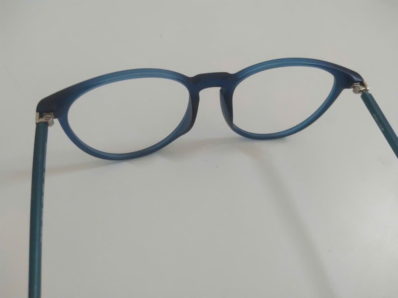 Gọng kính nữ màu xanh Police độ mới khoảng 96%.