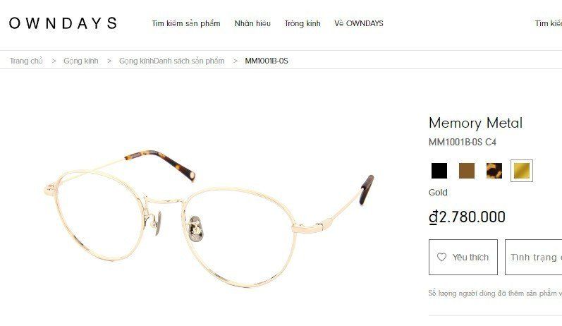 Gọng kính nữ Owndays màu vàng tây rất nhẹ. Gọng nhẹ, chắng chắn, dáng gọng sang trọng tinh tế.
