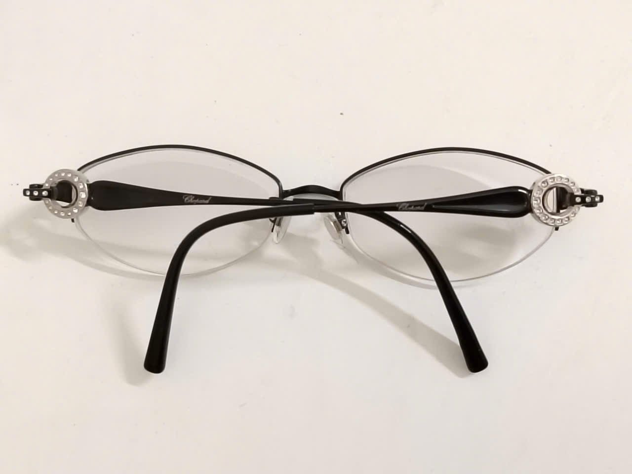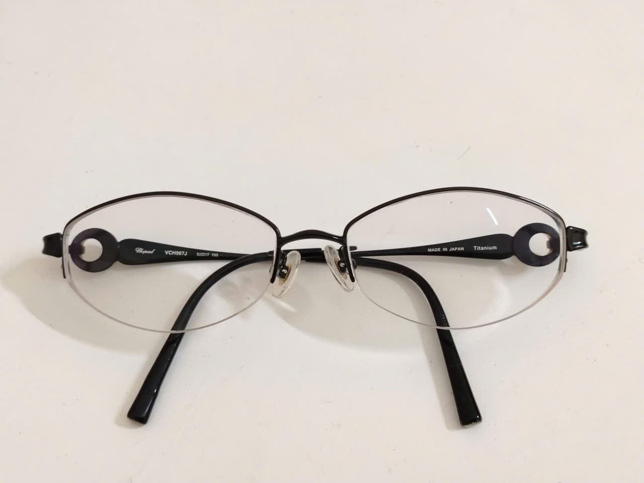 Gọng kính nữ titaium dáng nửa viền màu đen có gắn đá lấp lánh thương hiệu xa sỉ Chopard nổi tiếng (VCH987J).