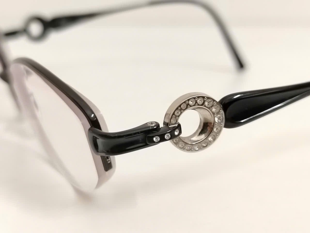 Mã sản phẩm: GKSS135 Tình trạng: Còn hàng Thương hiệu: Chopard Nhãn: Gọng kính gắn đá quý, ngang 13.5cm, cao 3.3cm, Gọng kính màu đen, size 53, Gọng kính nửa viền, cao 3cm