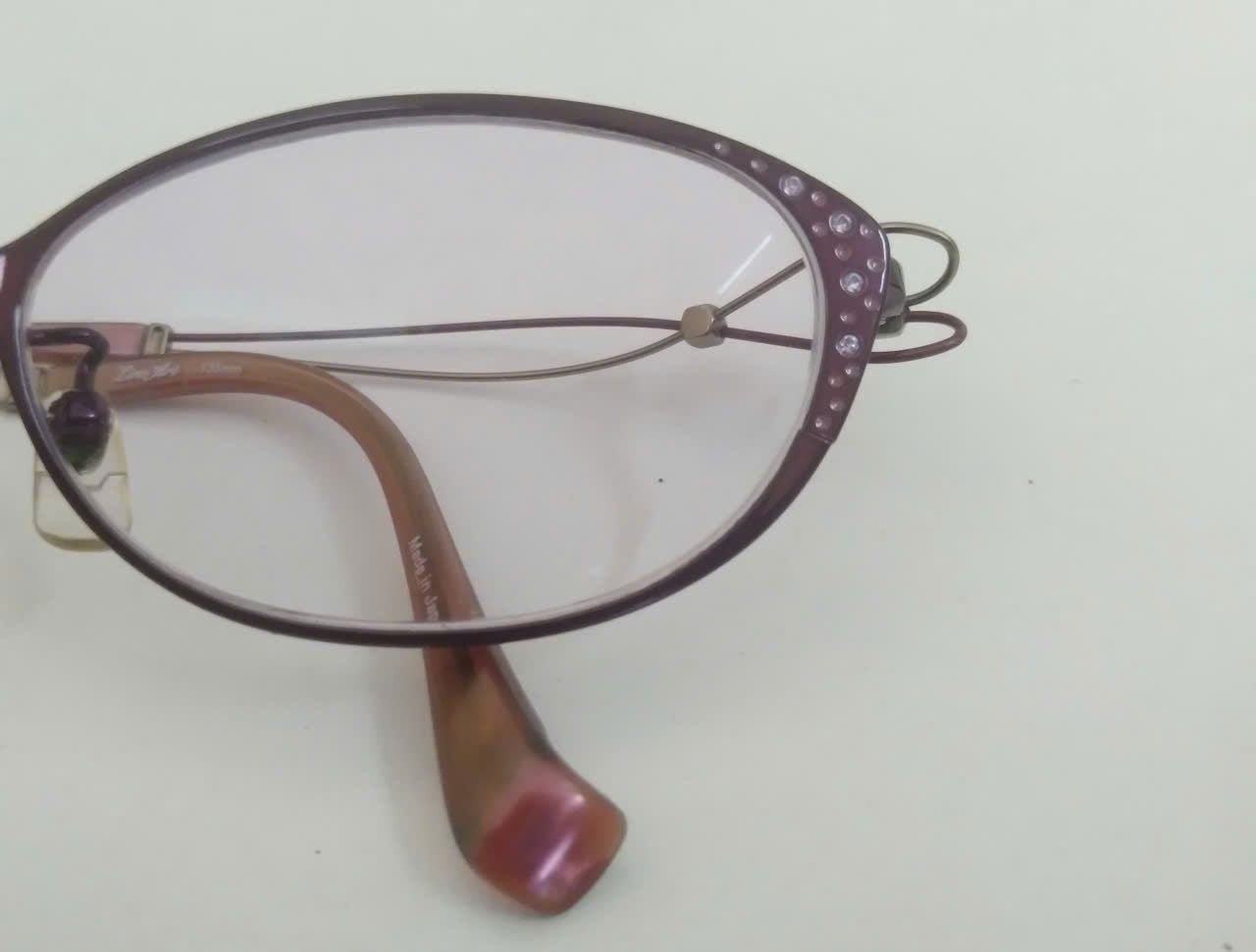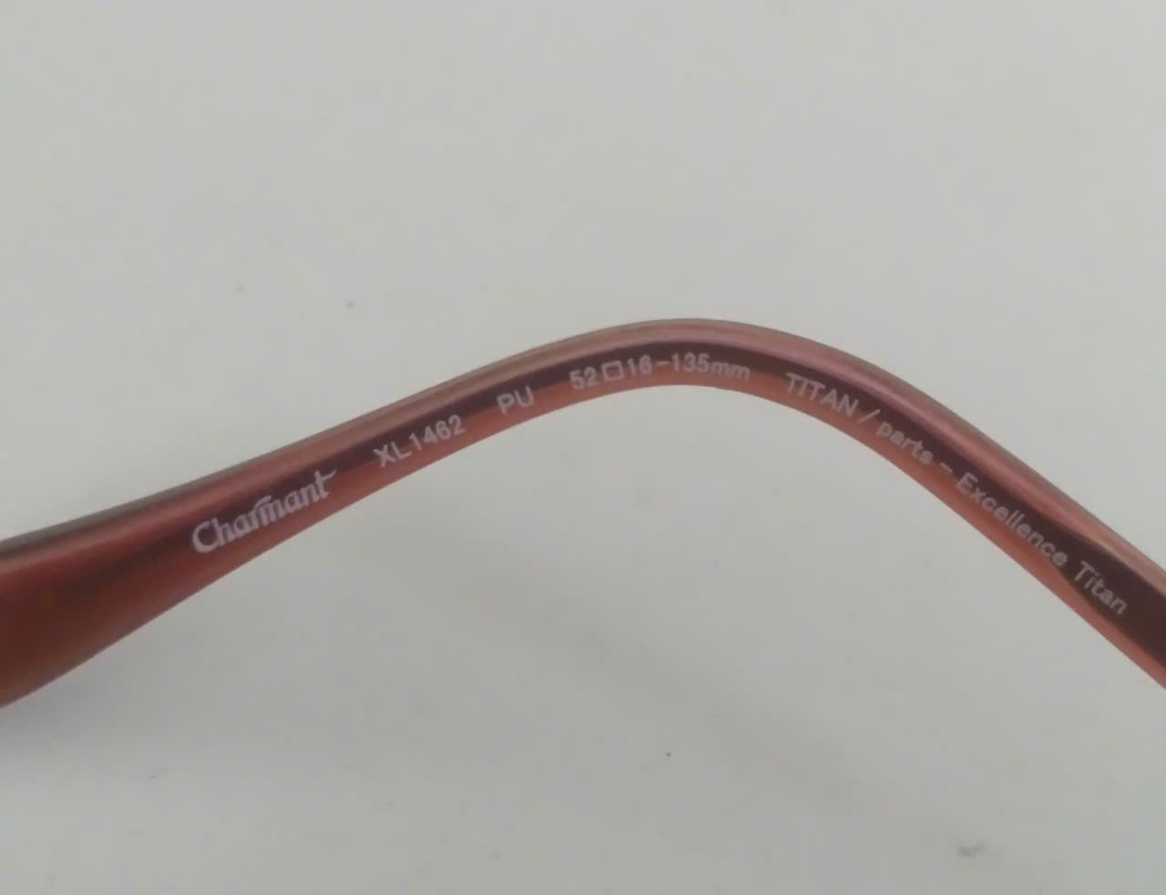Mã sản phẩm: GKSS98 Tình trạng: Còn hàng Thương hiệu: Charmant Nhãn: cao 3.3cm, Gọng kính màu mận chín, size 53, Gọng kính titanium, ngang 13.5cm