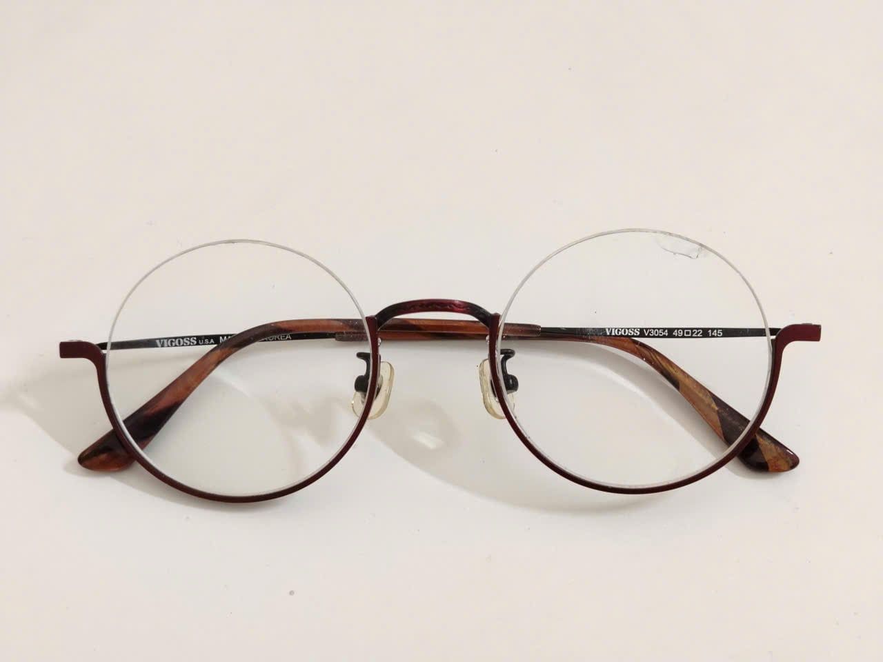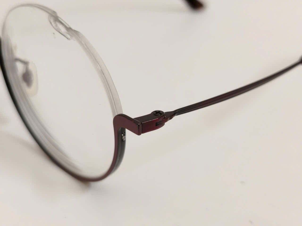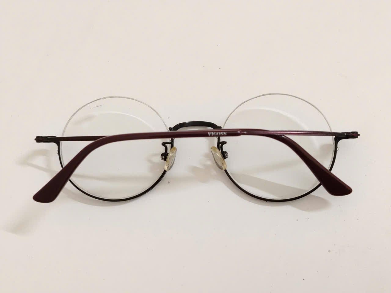 Gọng kính nửa viền dáng tròn màu đỏ tía thương hiệu Vigoss USA - Của Mỹ sản xuất tại Hàn Quốc.