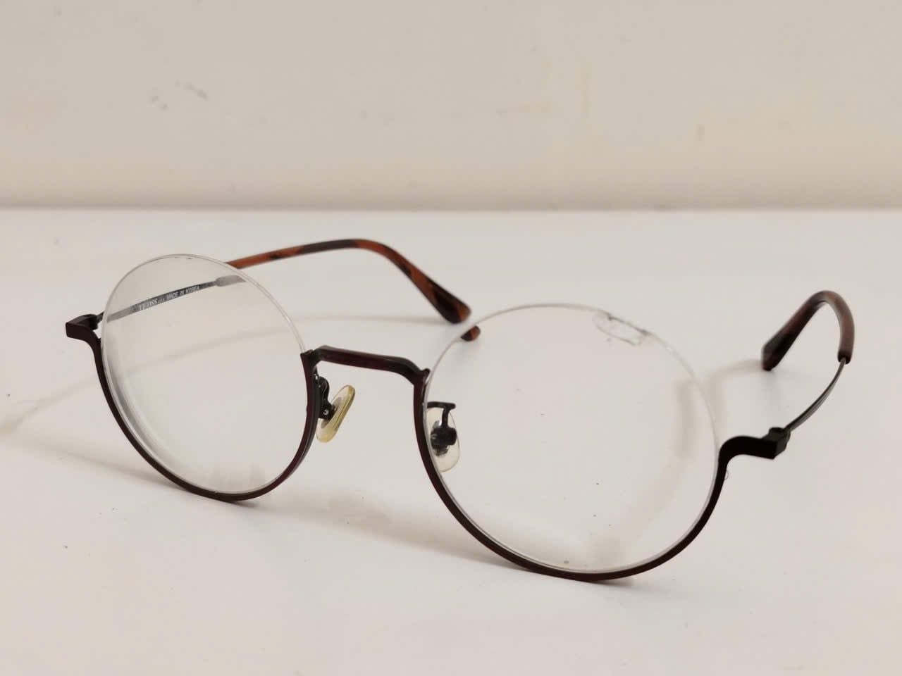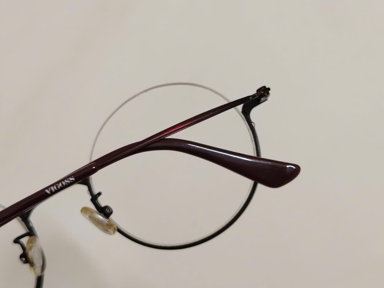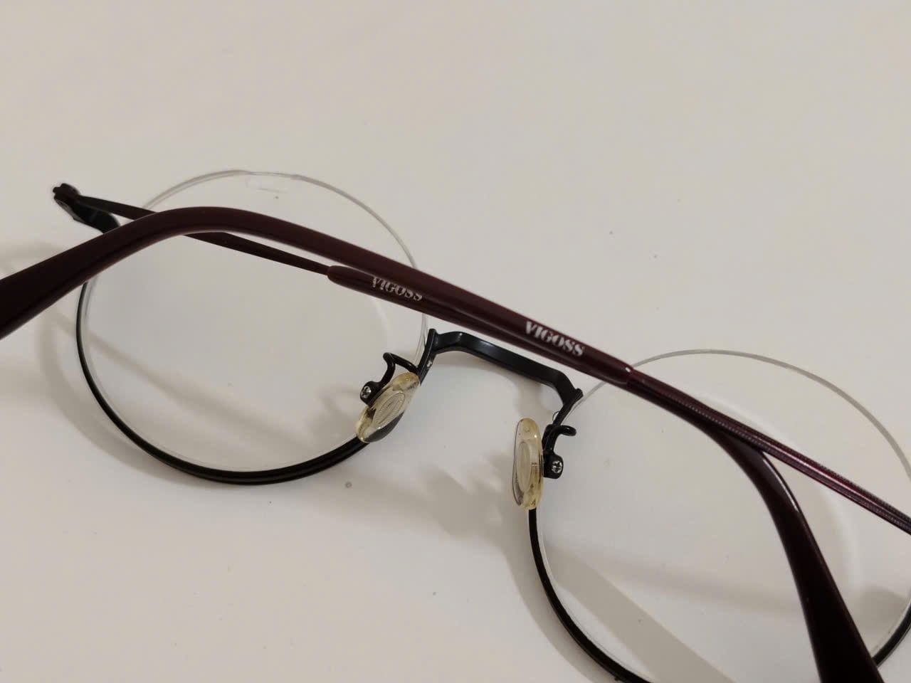 Gọng kính nửa viền dáng tròn màu đỏ tía thương hiệu Vigoss USA - Của Mỹ sản xuất tại Hàn Quốc.