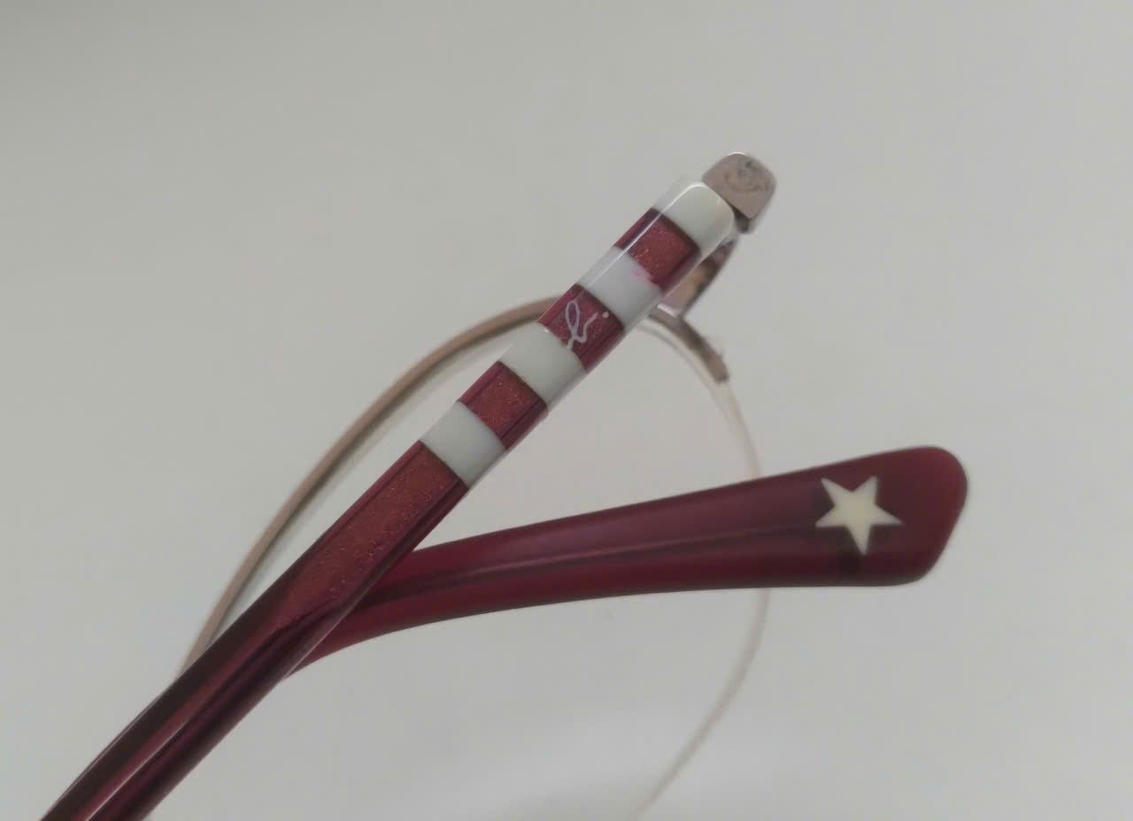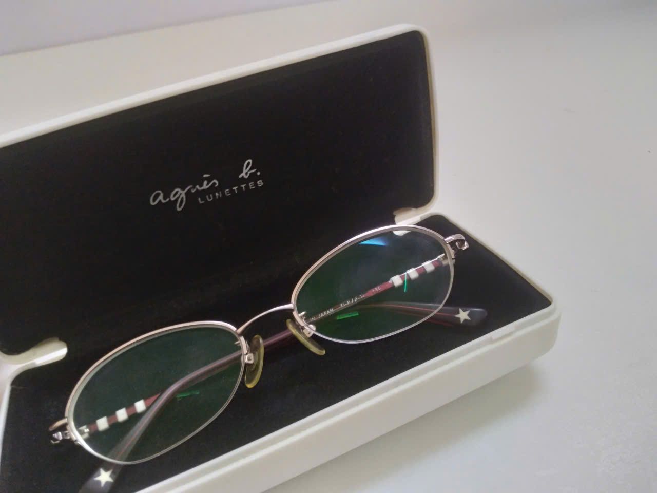 Gọng kính nửa viền titanium màu phớt hồng Agnes B thương hiệu Pháp.
