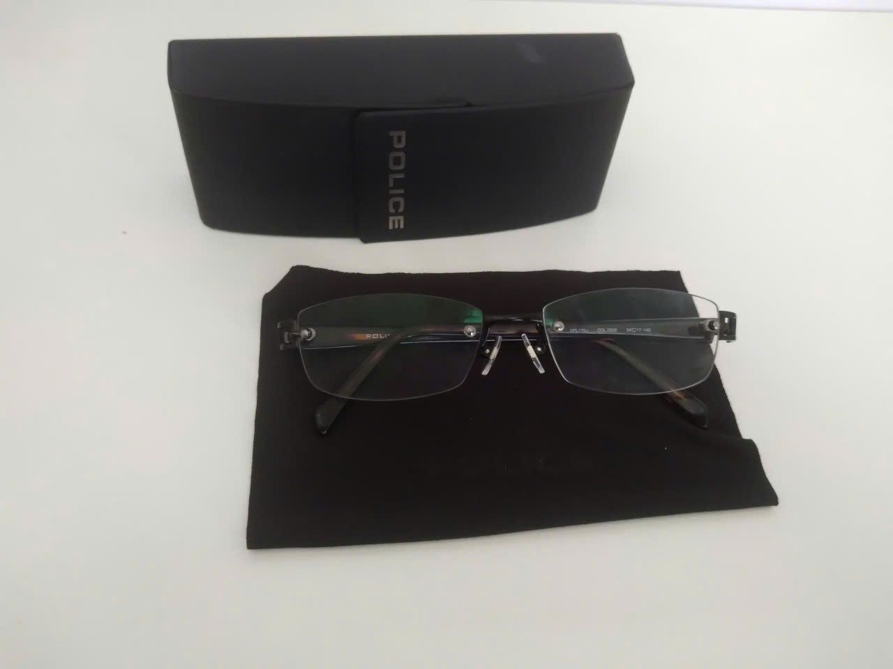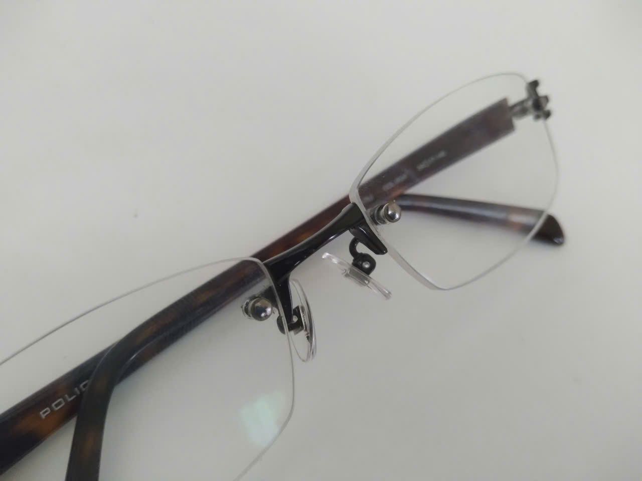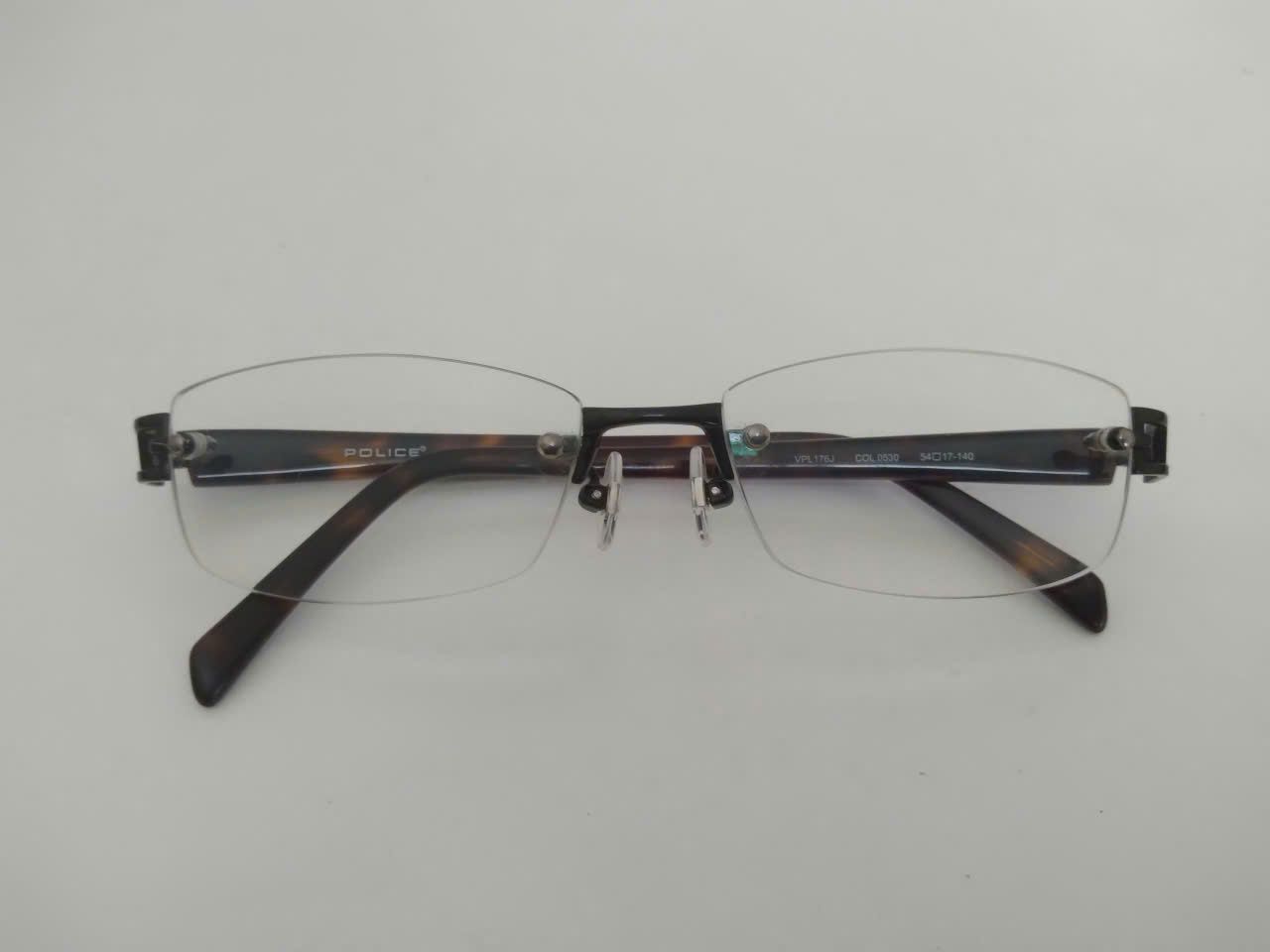 Gọng kính titanium khoan 3 mảnh màu đen Police (VPL176J 0530). (Độ mới khoảng 95%).