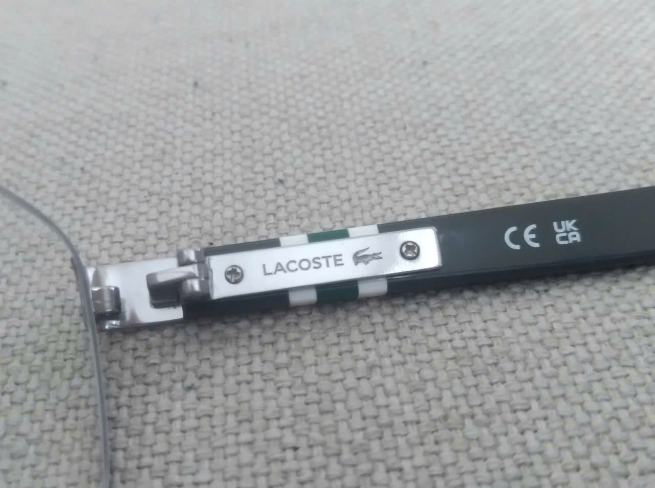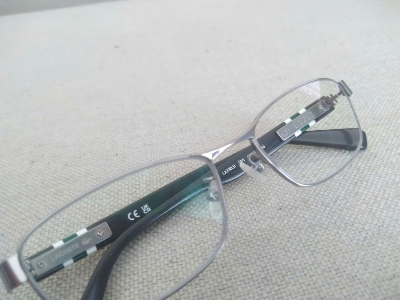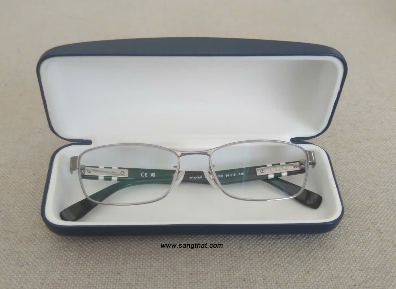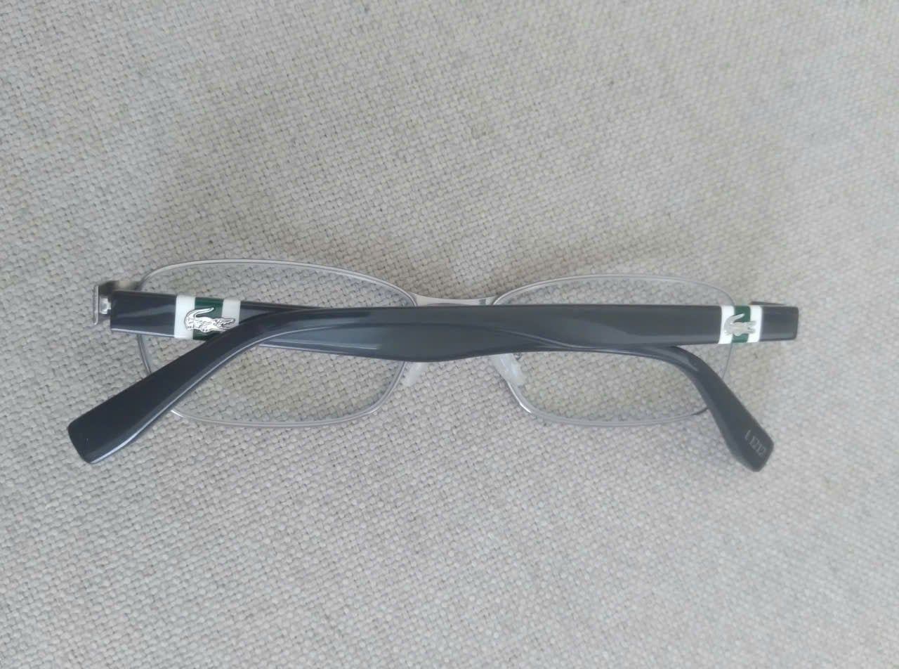Gọng kính titanium màu bạch kim Lacoste chuẩn xịn. Gọng độ mới hơn 90% full hộp đẹp.