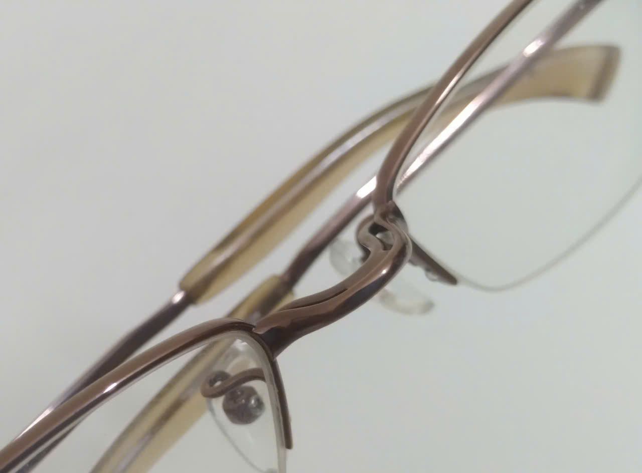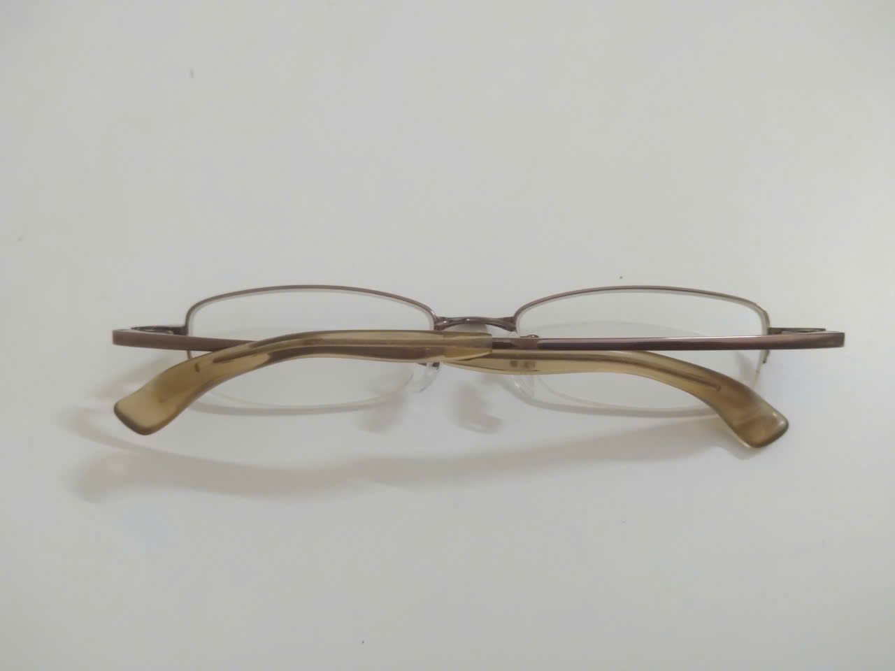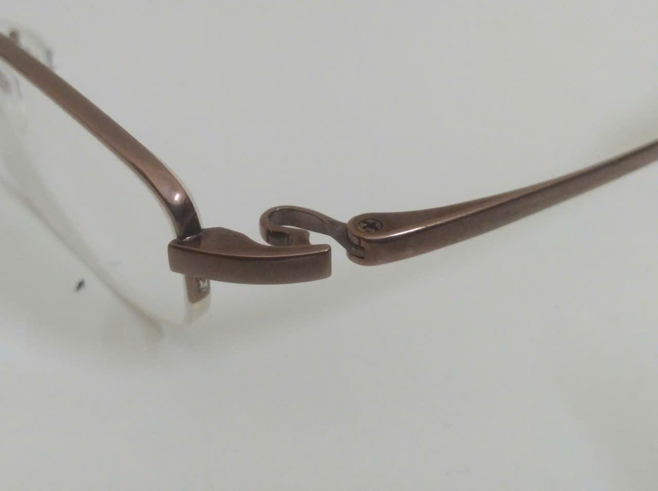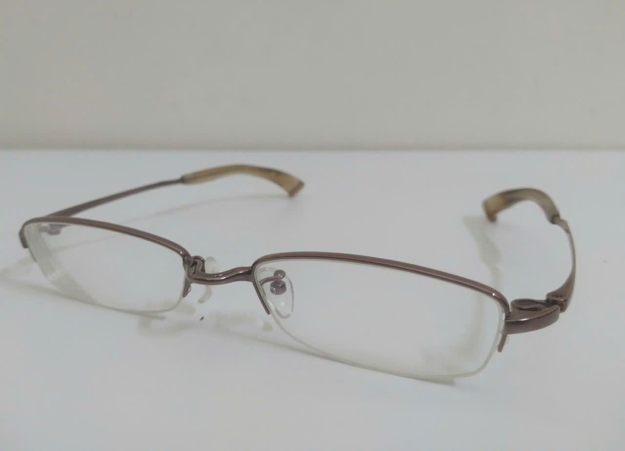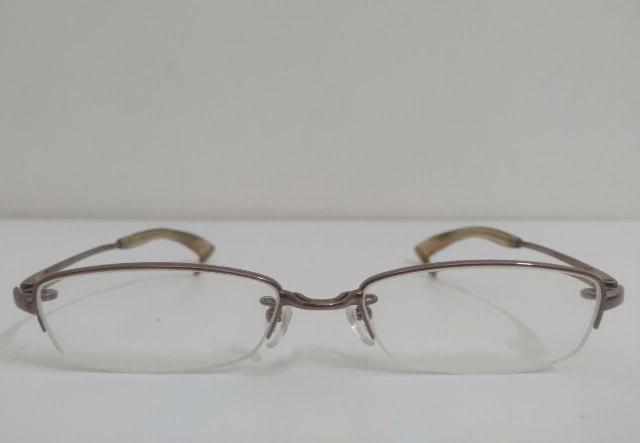 Gọng kính titanium màu nâu hun khói dáng nửa viền thương hiệu 999.9 (Made in Japan).
