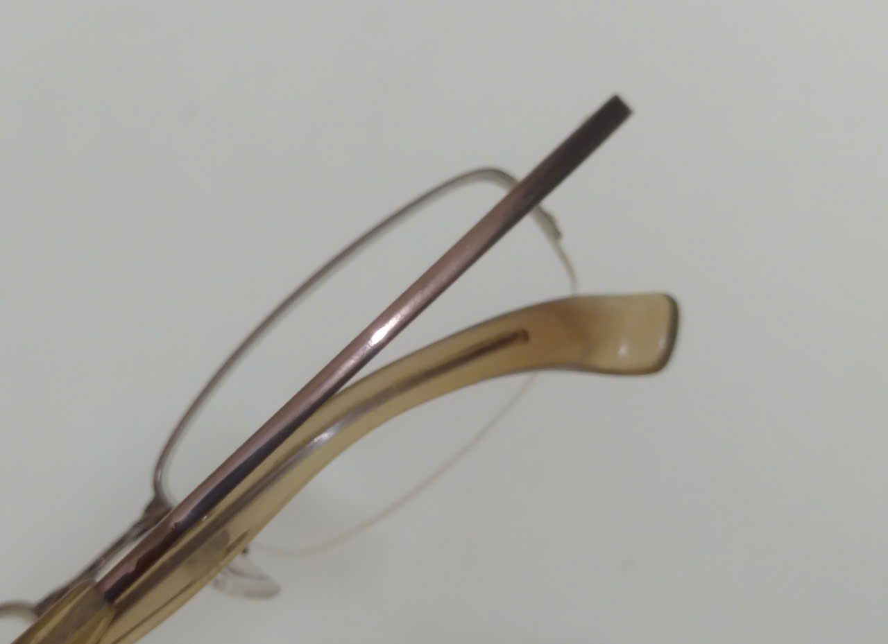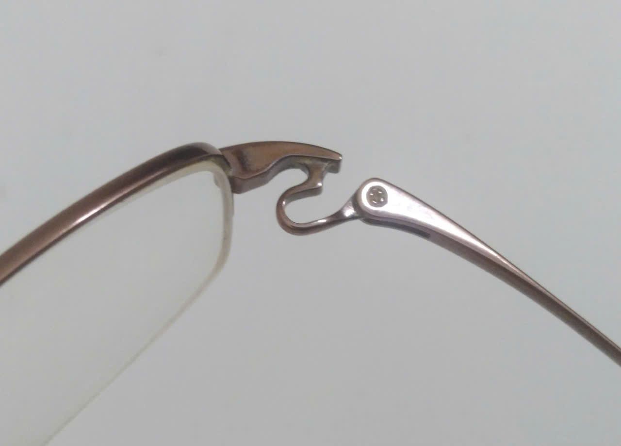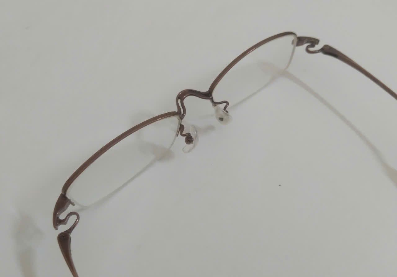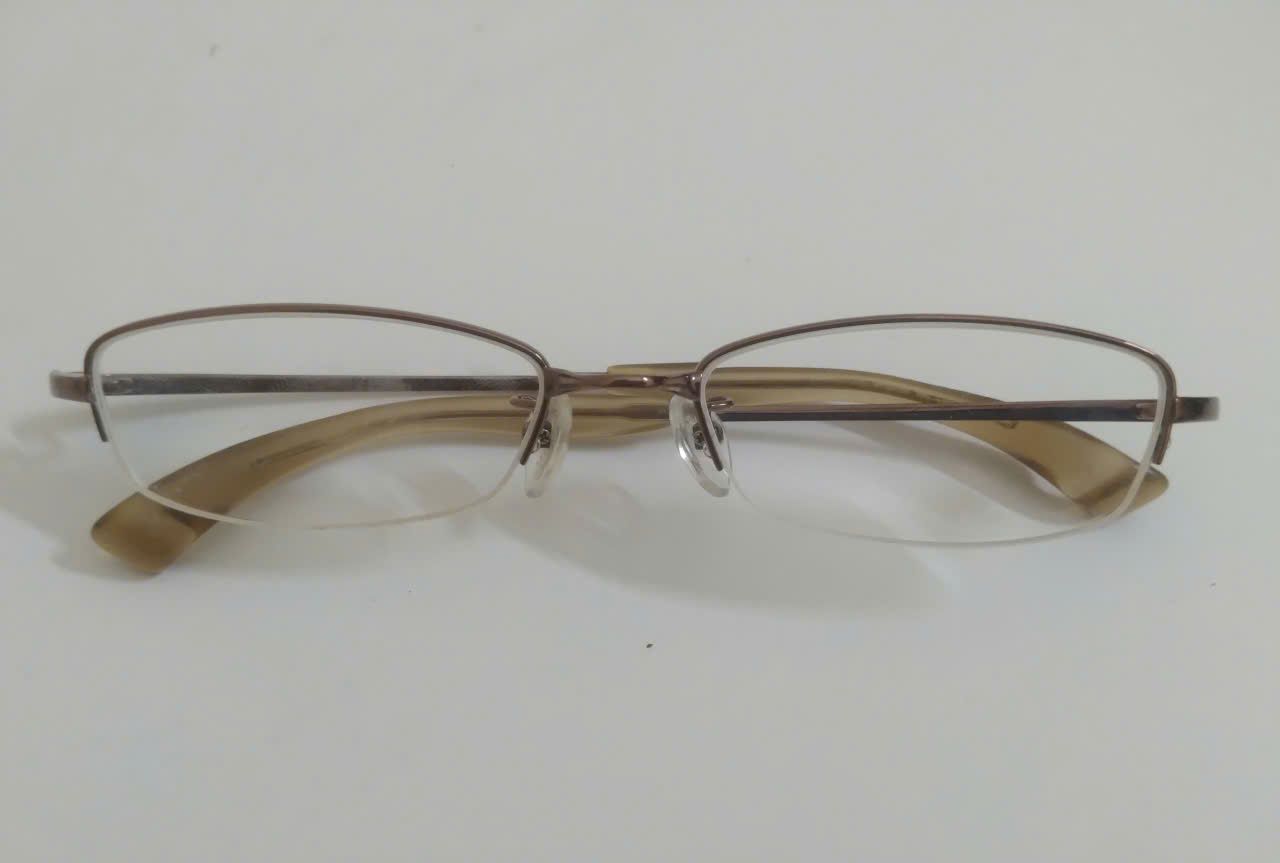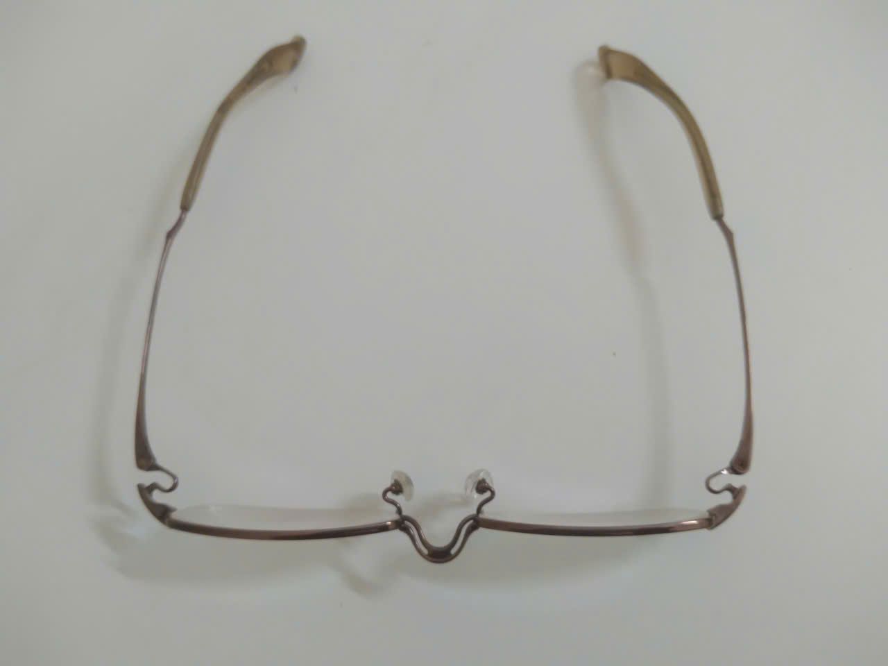 Gọng kính titanium màu nâu hun khói dáng nửa viền thương hiệu 999.9 (Made in Japan).