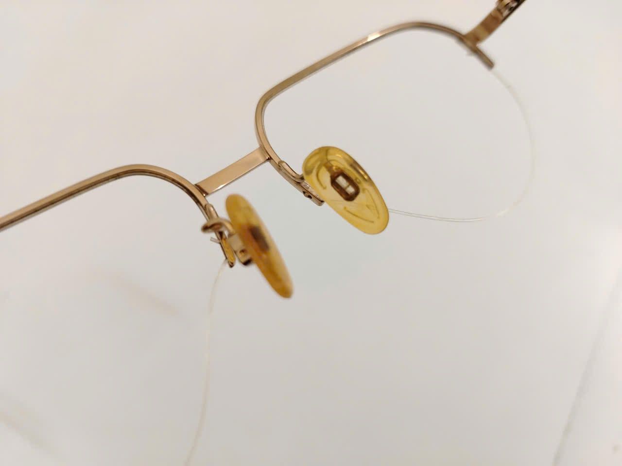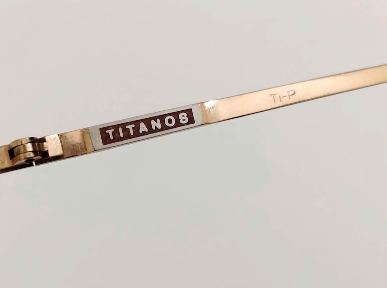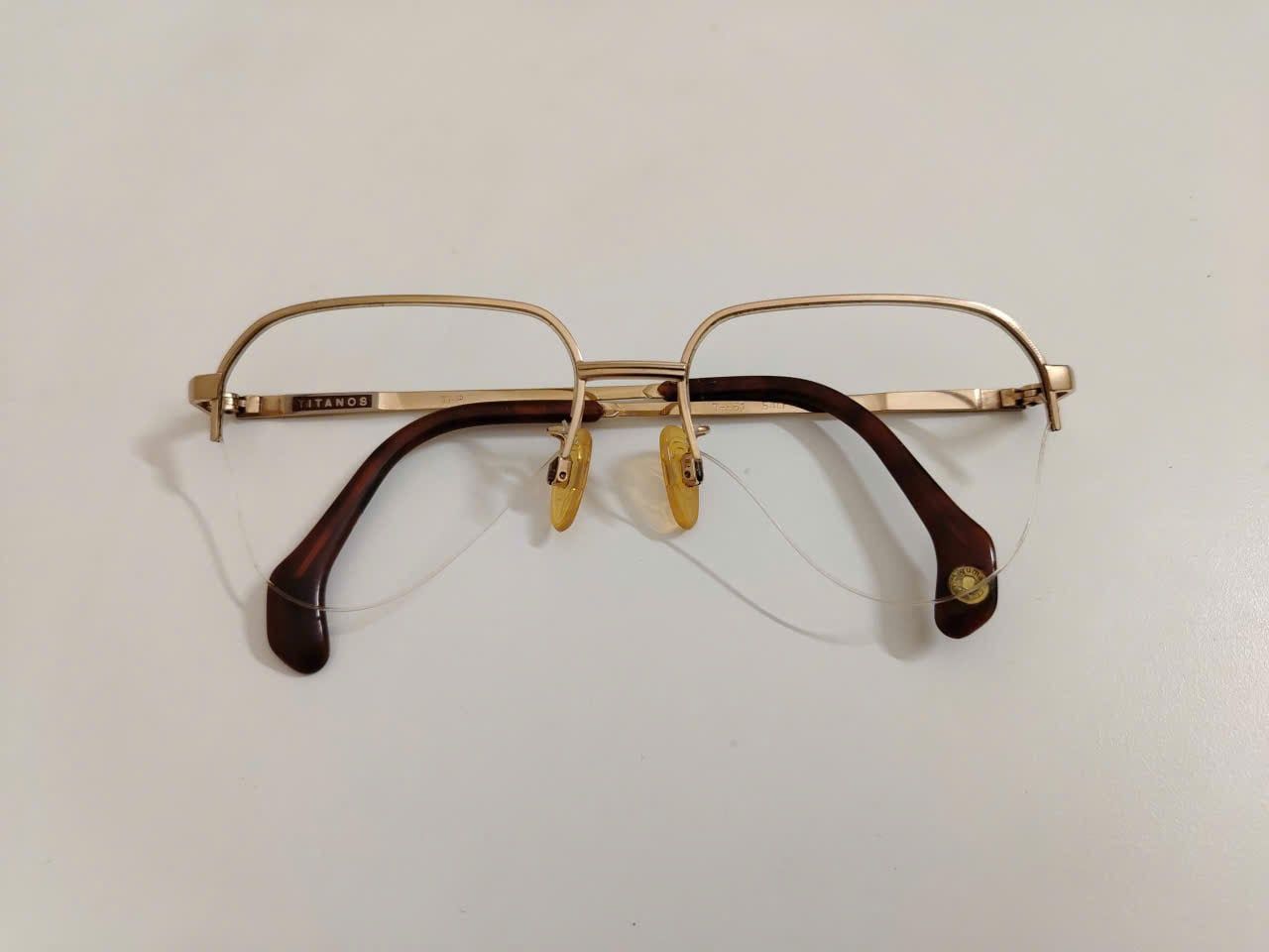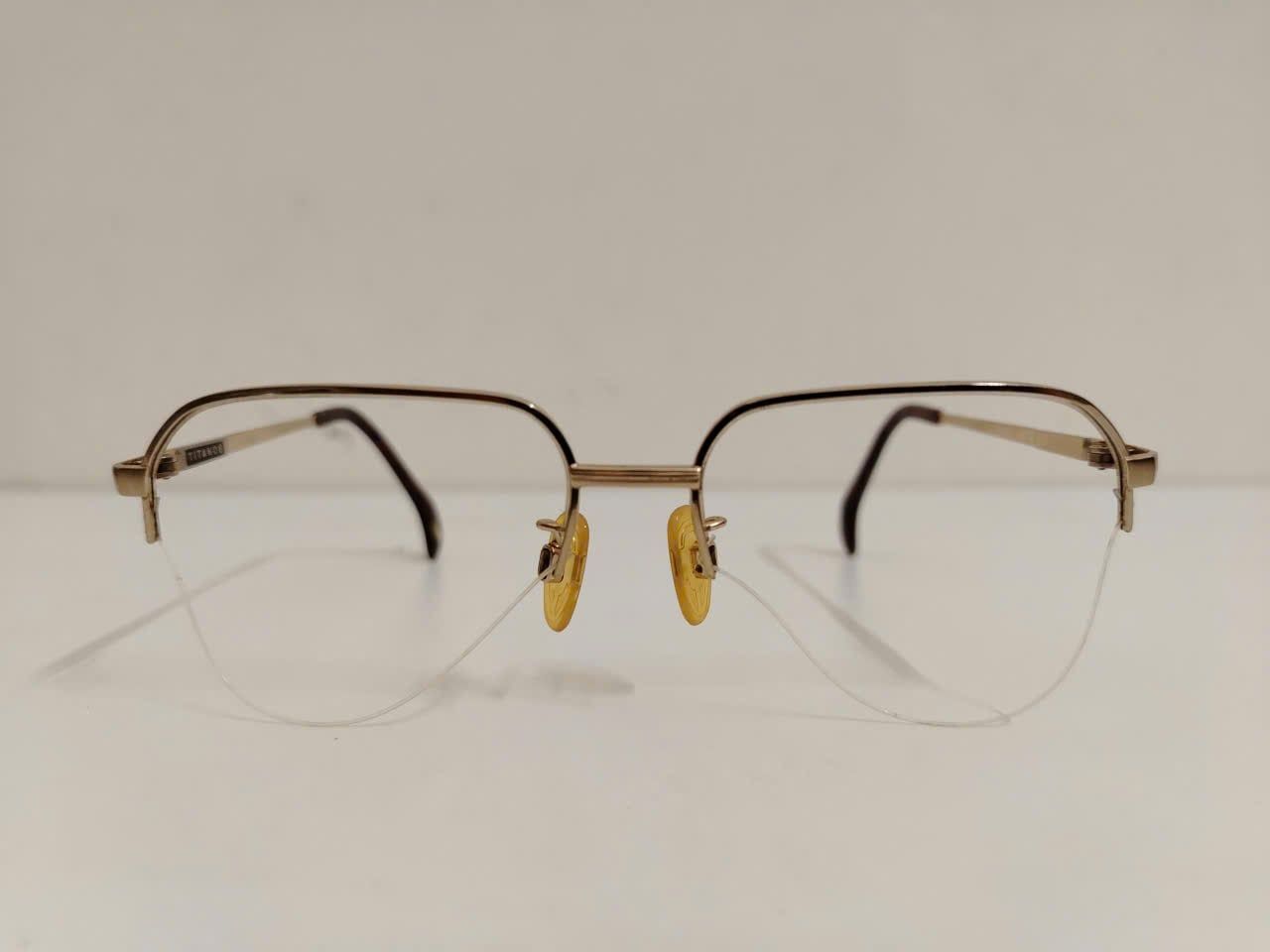 Gọng kính titanium nửa viền màu vàng tây thương hiệu Titanos nổi tiếng Nhật Bản.
