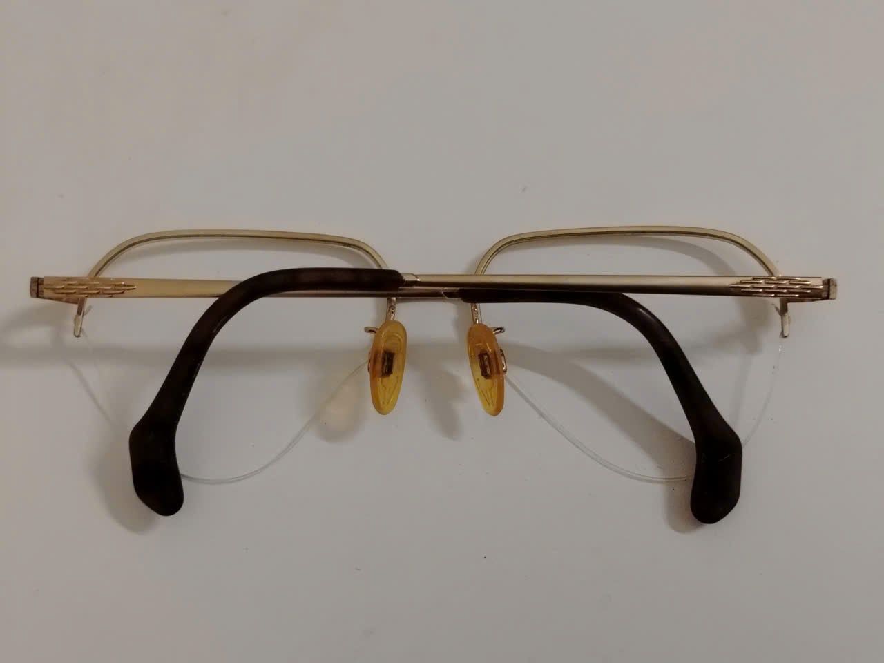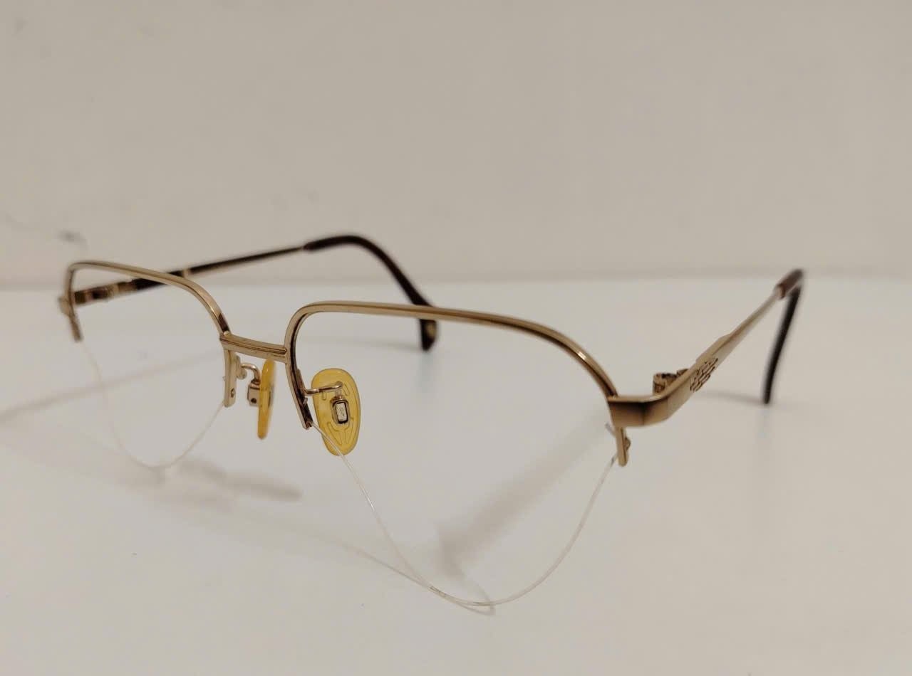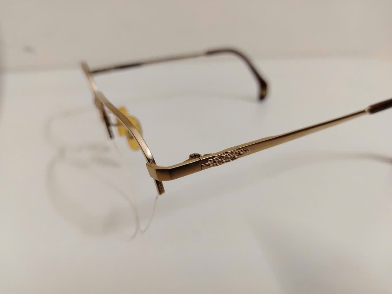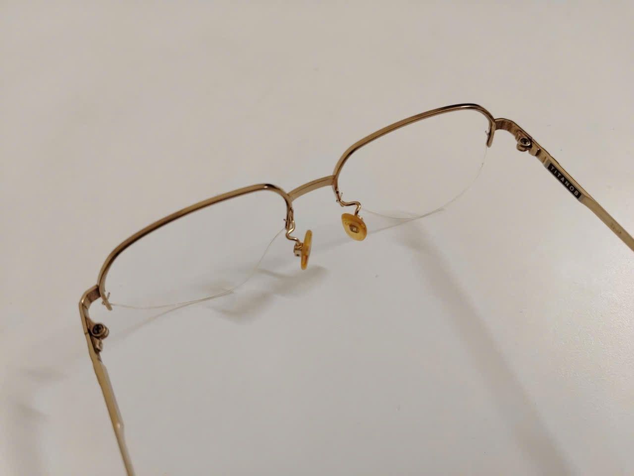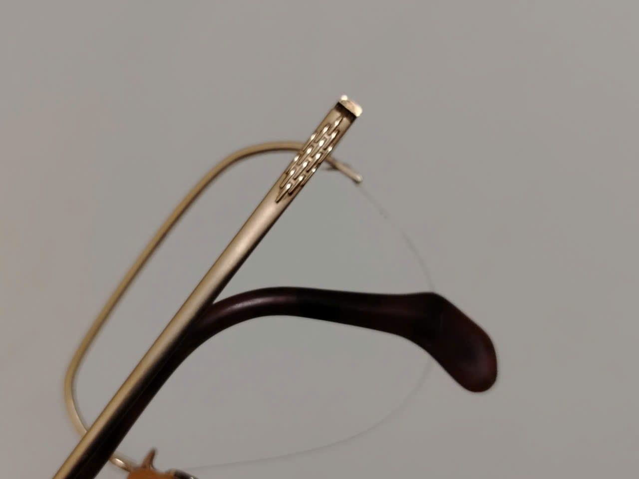 Gọng kính titanium nửa viền màu vàng tây thương hiệu Titanos nổi tiếng Nhật Bản.