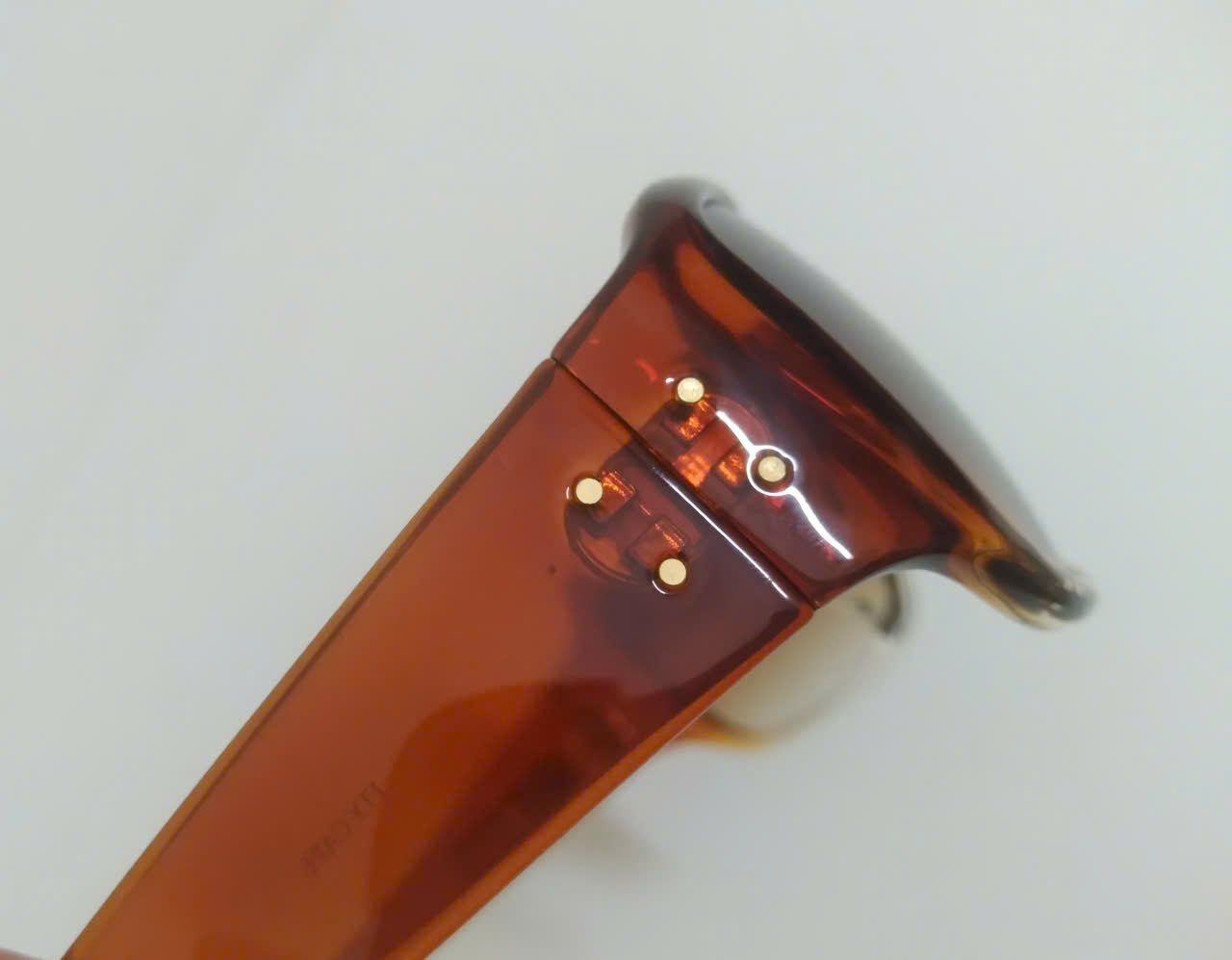 Mã sản phẩm: KR119 Tình trạng: Hết hàng Thương hiệu: Khác Nhãn: Cao 4.5cm, Gọng kính màu mã não, cao 5cm, kính râm, Ngang 14cm
