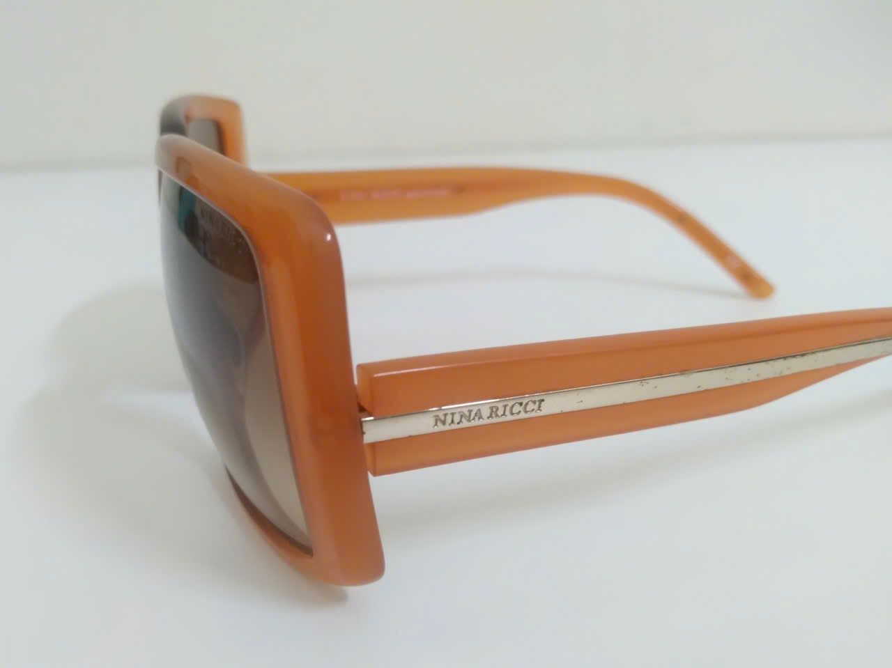 Mã sản phẩm: KR116 Tình trạng: Còn hàng Thương hiệu: NIna Ricci Nhãn: ngang 13.5cm, Cao 5.5cm, kính râm, Size 58, gọng kính màu cam