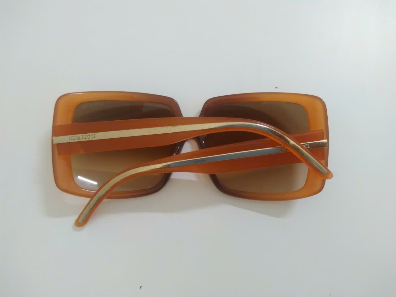 Kính râm nữ cổ điển màu vàng cam phối nâu Nina Ricci thương hiệu Pháp (Made in France)