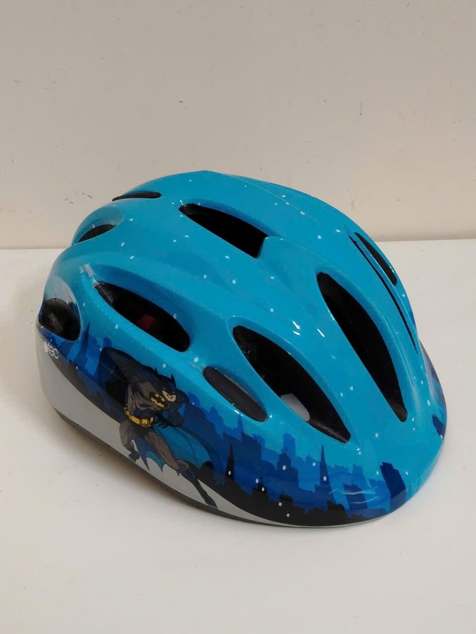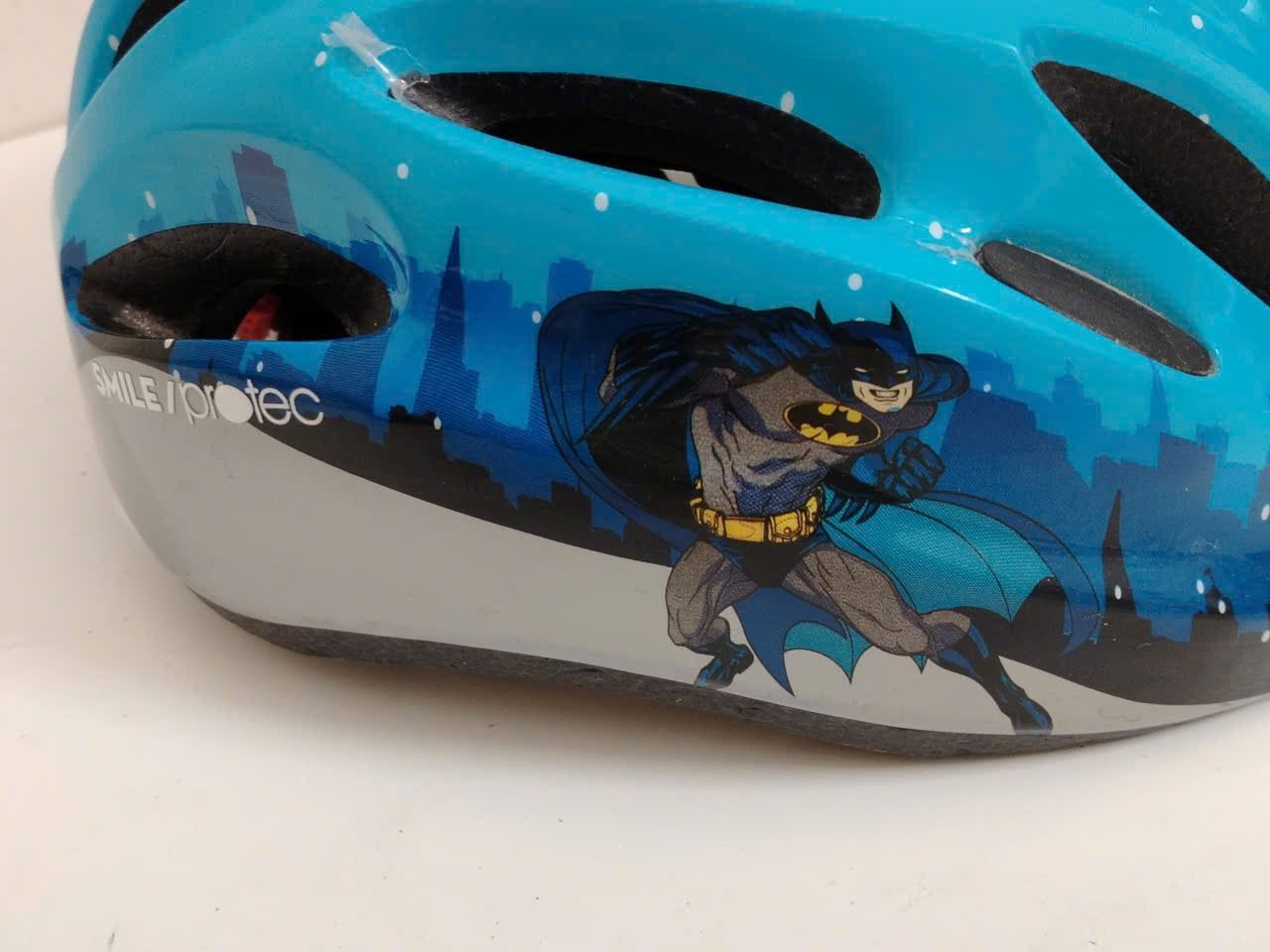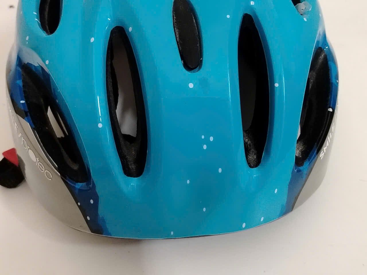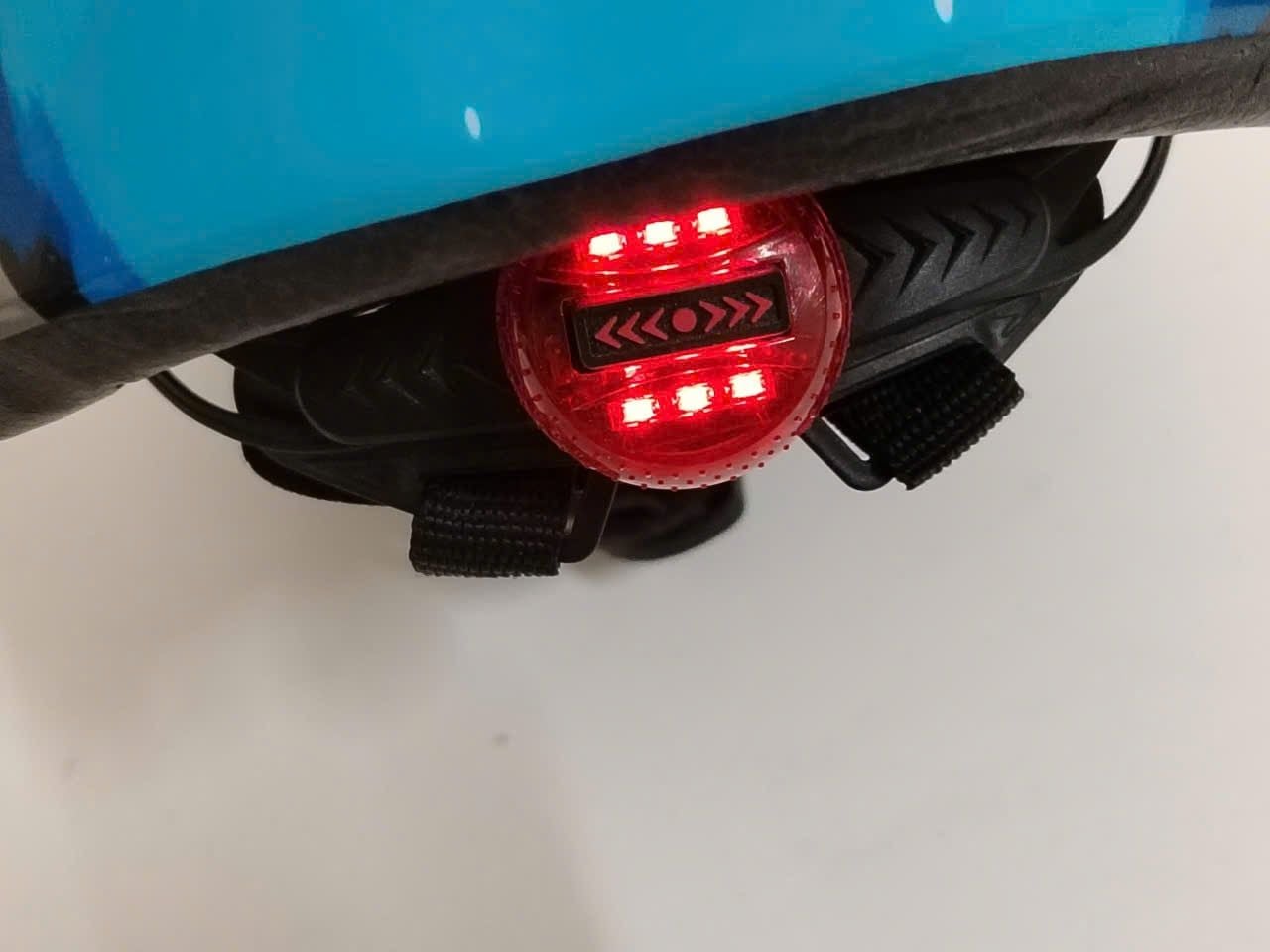 Mũ bảo hiểm màu xanh Protec có đèn báo hiệu sau gáy cho các bạn nhỏ khoảng lớp 3 đến lớp 6 7