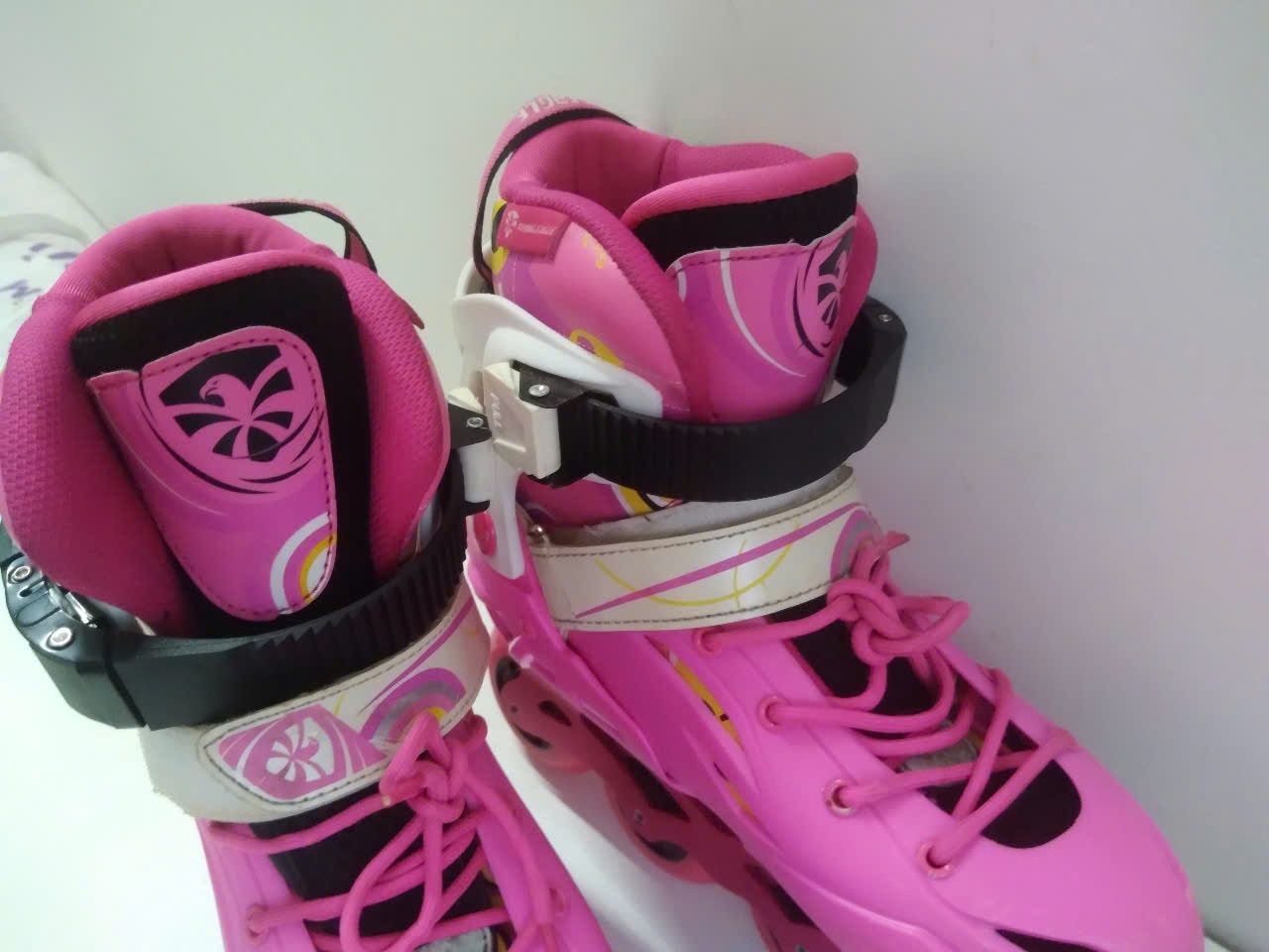 Patin màu hồng Flying Eagle size 33 co giãn 37 (Tầm chân size 31 32 vẫn đi tốt). (Độ mới khoảng 90%)