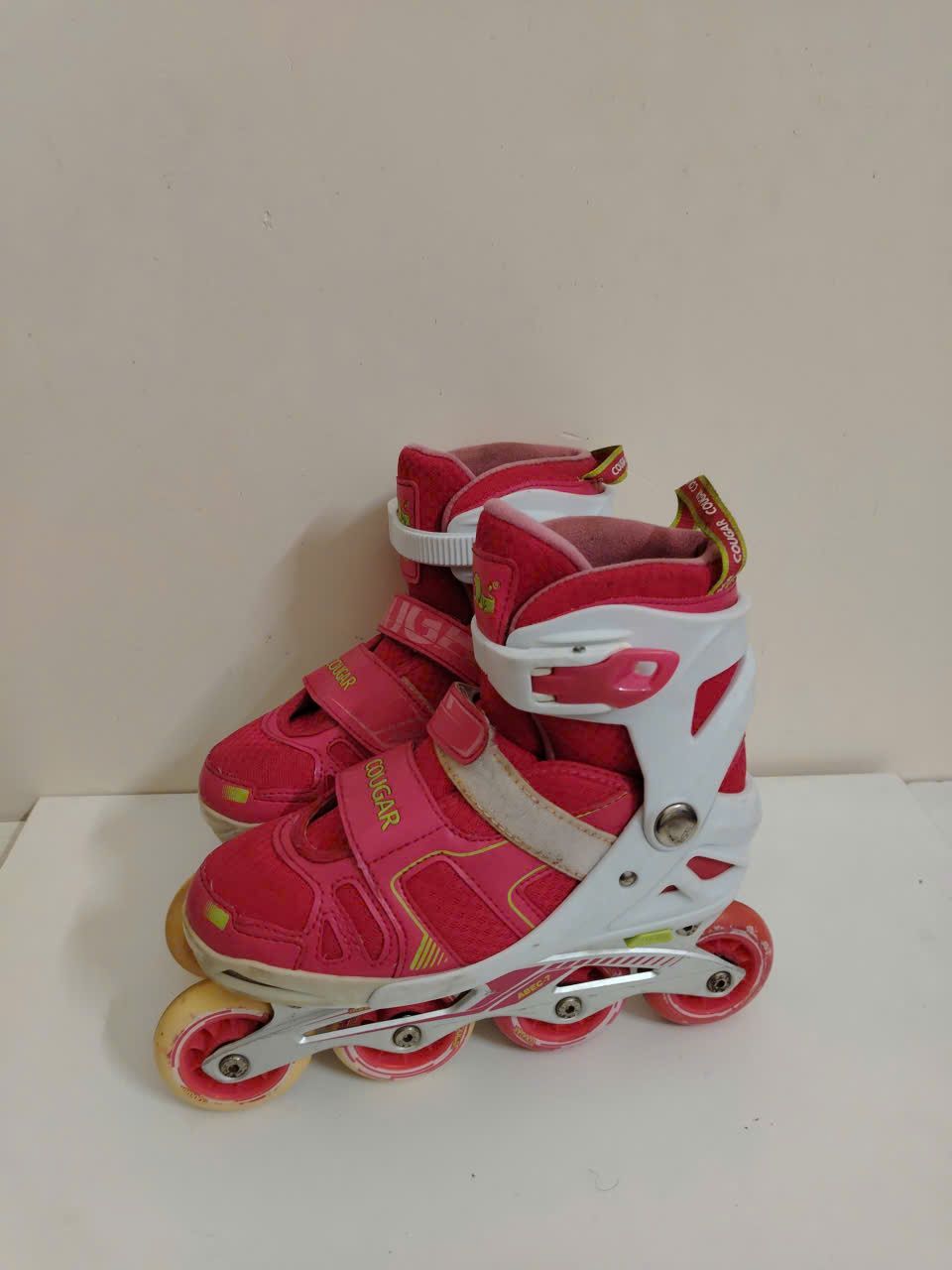 Patin màu hồng phối trắng Cougar size 38 co giãn 41 (Chân tầm 34 35 vẫn đi tốt).